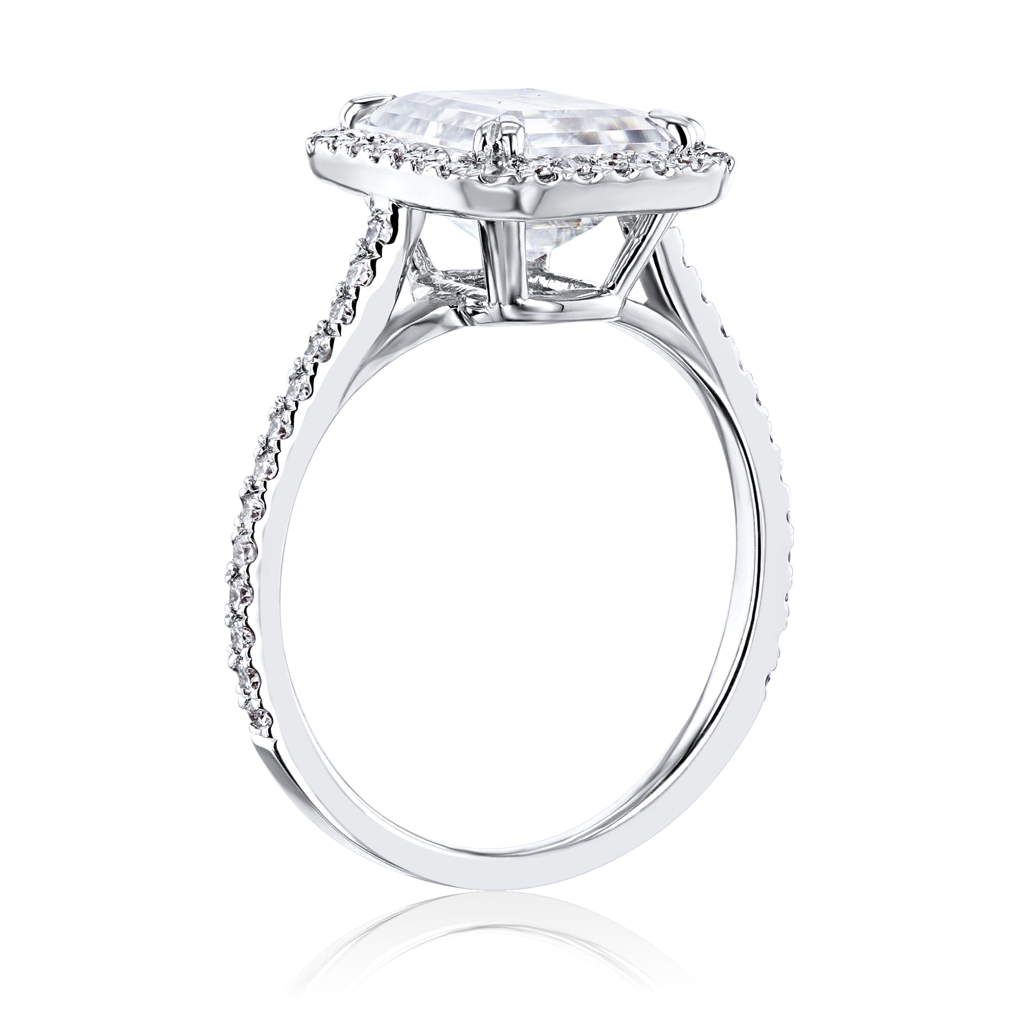 Invest in things that last with this Kobelli moissanite engagement ring featuring the star of the show - a 2.45 carat emerald-cut center stone held by four prongs.