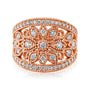 Solid 14 karat gold and lab grown diamonds arranged in a stunning floral motif are exquisitely set in this gorgeous fashion ring. Outlined with gold beaded milgrain edges, this masterpiece is a display of art to be worn as a statement piece. Pair it with your office attire to brighten the outfit or with a formal gown to stand out from the crowd.