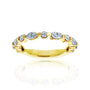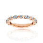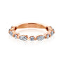 Gorgeous boat-shaped marquise diamonds and ever-popular circular-shaped round diamonds interchange with shared bead prongs guiding the way. The alternating elongated to stout shapes offer a trendy yet cohesive design across the surface of this near-eternity wedding band.