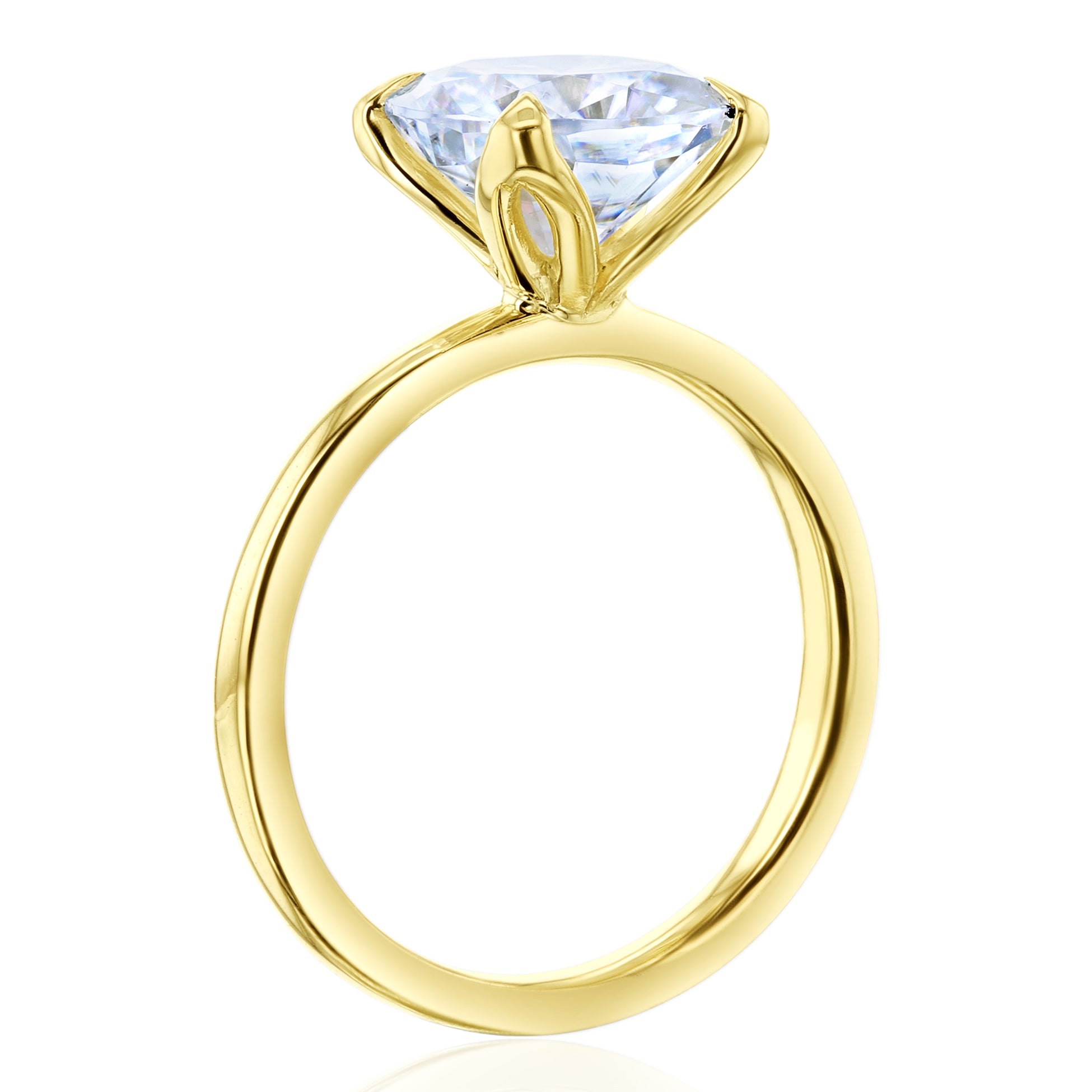 You know love wins when you get hold of one of the finest solitaire rings from Kobelli. Our Cushion Floating Tulip Comfort Fit Engagement Ring features a 2.8-carat moissanite cushion-cut center stone held by 6 tulip-shape prongs creating a minimalist design to highlight the center stone so that it appears like it's floating. The rounded cushion stone has the sparkle and clarity that of a round diamond. Crafted from a 14K comfort fit solid gold band, this classic floral head solitaire ring is an absolute charm.
