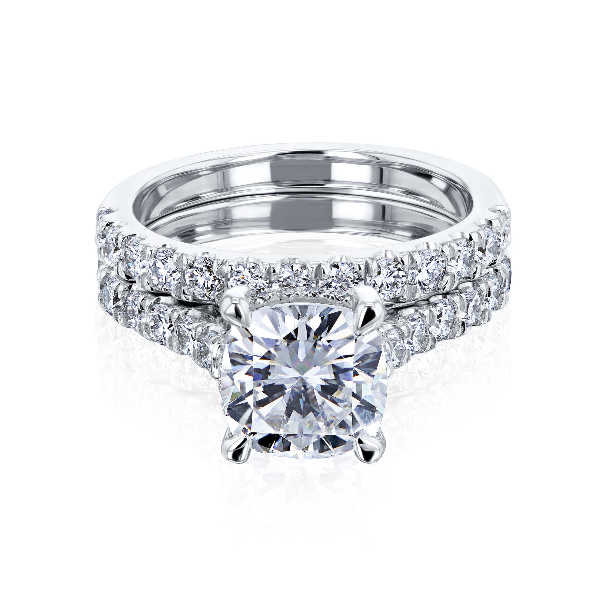 Kobelli 2-Carat Cushion Hidden Halo Bridal Set