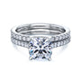 With the prongs of the peg head set barely above the band, this ring allows for the flat wedding band to match alongside it. The flat wedding band gives you the option to wear it on its own or with your engagement ring.
