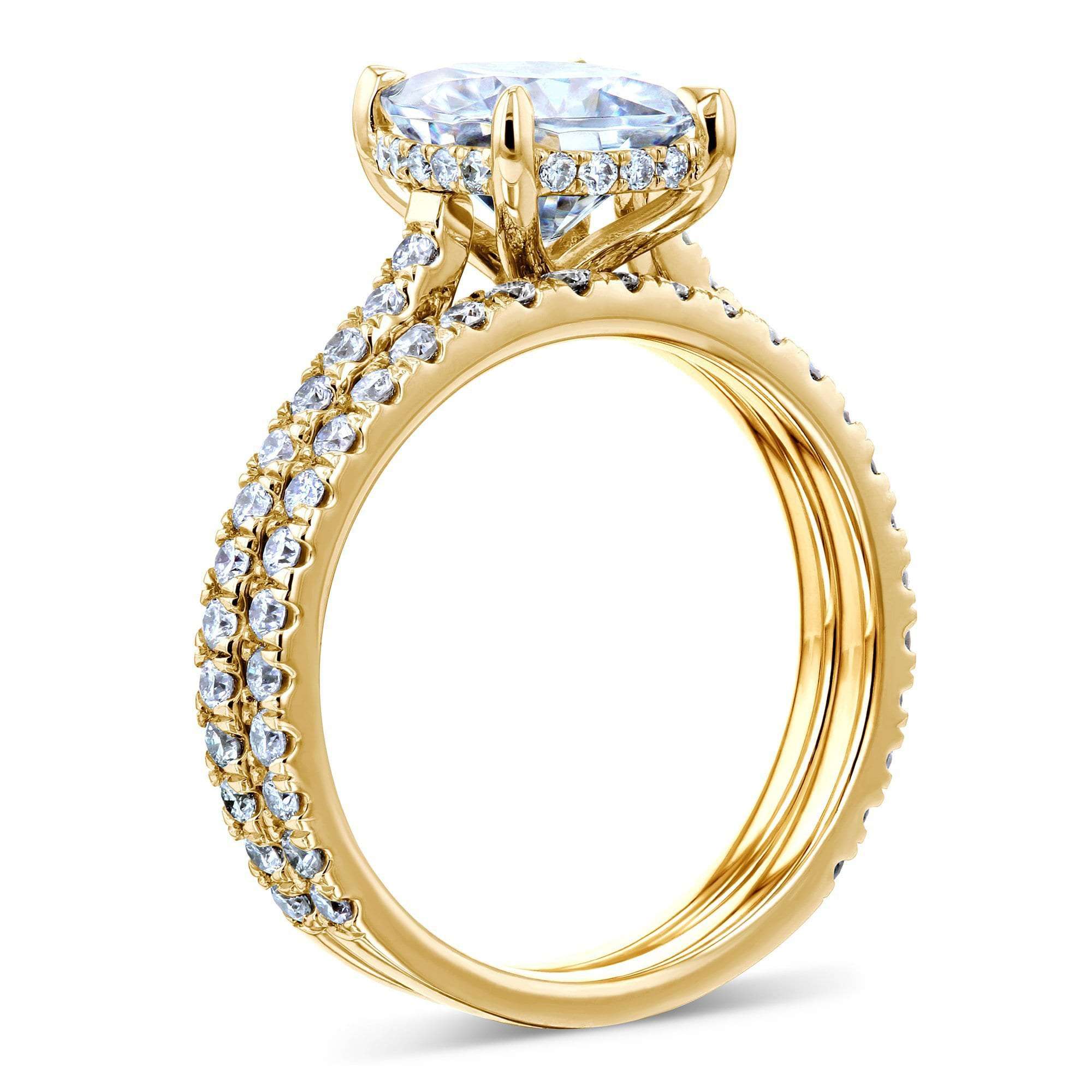 Kobelli 2ct Cushion Moissanite and 4/5ct Diamond Drop Halo Comfort Fit Bridal Set in 14k Gold