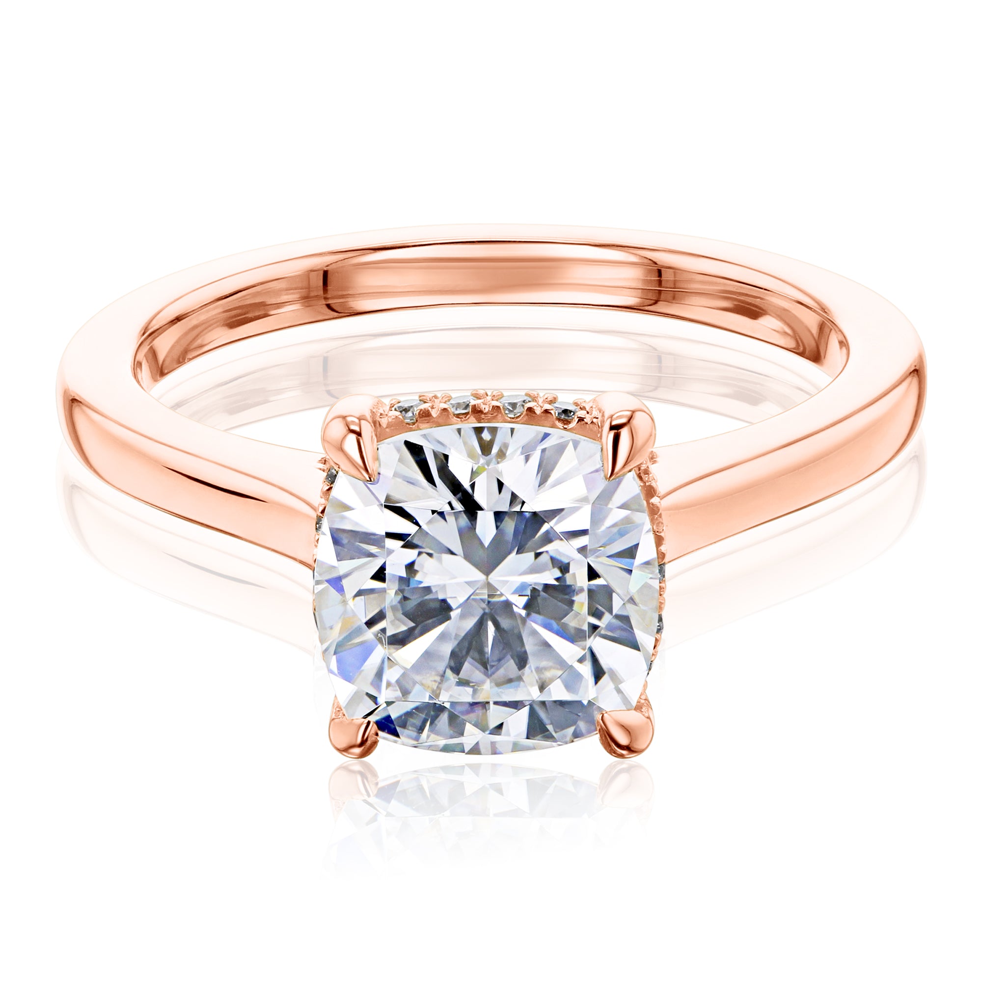Cara 2ct Cushion Moissanite & 1/6ct.tw Diamond Cathedral Engagement Ring