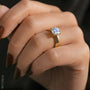 Adding to the design’s classic cathedral look is its bridge optionally illuminated with six diamonds on each side of the engagement ring. Select from a pavé diamond shank or keep it minimally chic with a solid gold style.