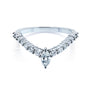 A gorgeous marquise diamond is centered on this pointy chevron diamond ring in solid 14-karat gold. Perfected for the urban princess, the boat shaped cut is revered as a regal diamond cut for top class jewelry. As a wedding band, this ring pairs nicely with most pear or oval shaped solitaires as well as halos. The trendy v-shaped contour establishes an elegant, more modern, look for the chic fashionable bride. Chevron diamond rings are the ultimate alternative to a flush fit wedding band for anyone looking to show some style while sporting the traditional diamond and gold look.