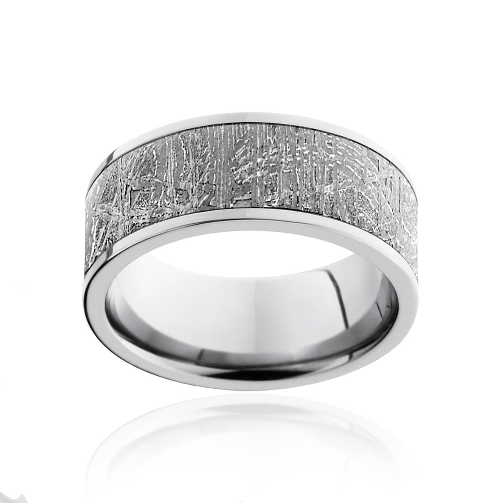 Cobalt Chrome 9mm Flat Band with 7mm Meteorite Strip Inlay