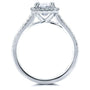 Cushion-cut Moissanite and Diamond Halo Trellis Engagement Ring 1 2/5 CTW in 14K White Gold