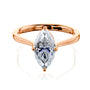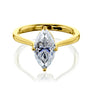 A solitaire 1.8 carat marquise-cut moissanite tops this minimalistic engagement ring in a clean design. The underside of your center hides away an adoring compass motif, taking your boundless quests readily though your journey of never-ending commitment.