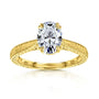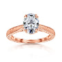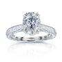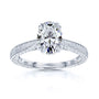 Our Valentina Ring is one of Kobelli's top selling vintage style engagement rings, hand-crafted in a cathedral setting. This version features a sparkling oval-cut center stone and 2 peek-a-boo diamonds encrusted within the bridge. The intricate design of the 14-karat solid gold metal from the shank leading up to the head ring is a story of workmanship and dedication in creating a true masterpiece made worthy for the bearer.