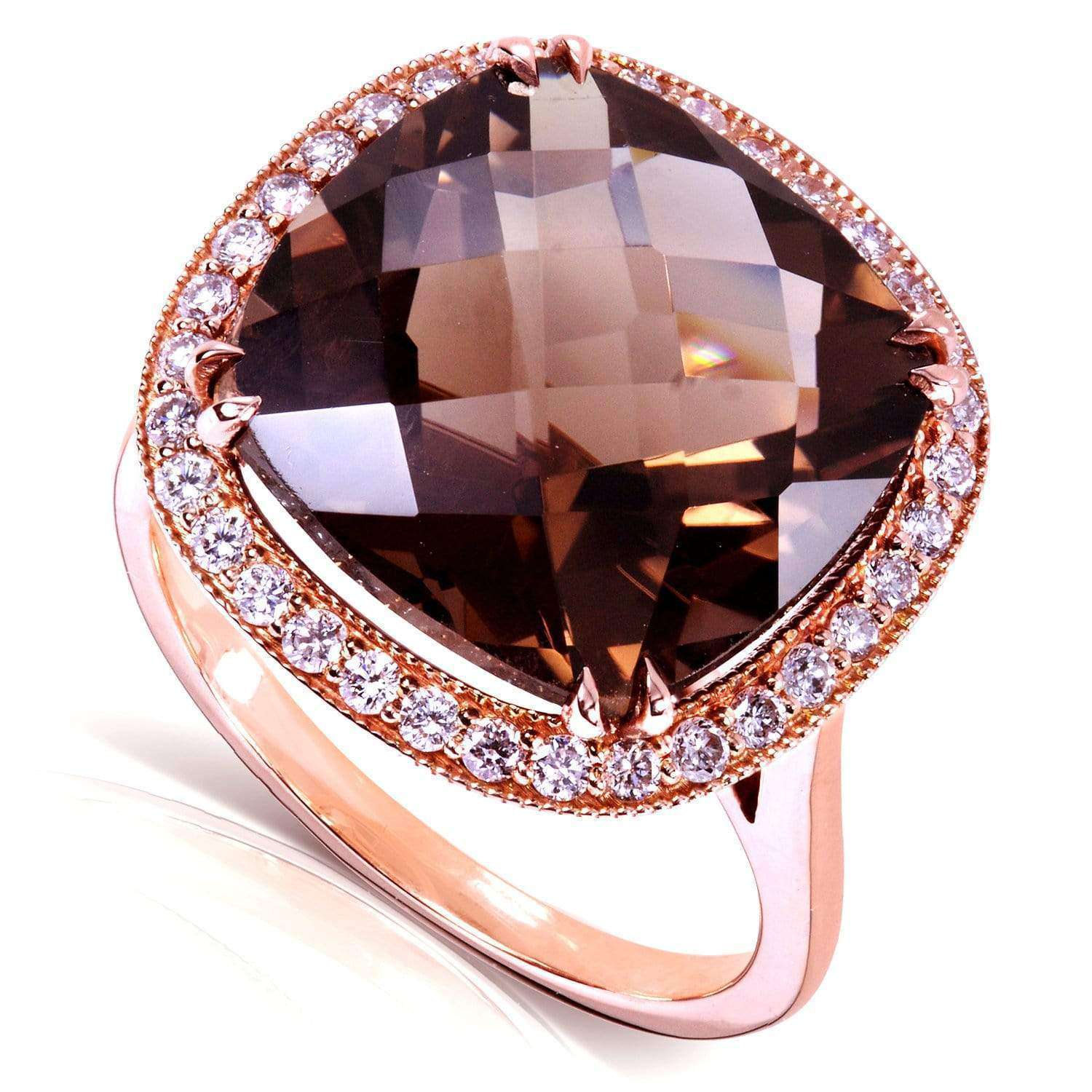 Smoky Quartz and Diamond Ring 8 1/4 Carat (ctw) in 14k Rose Gold