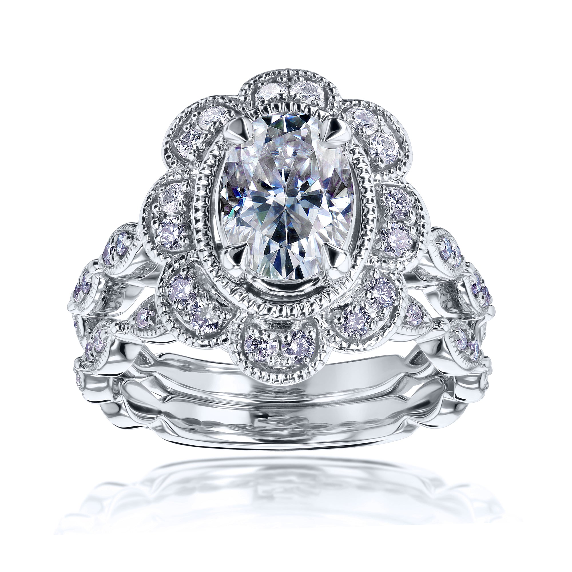 2 Carat Moissanite Royal Floral Bridal Set
