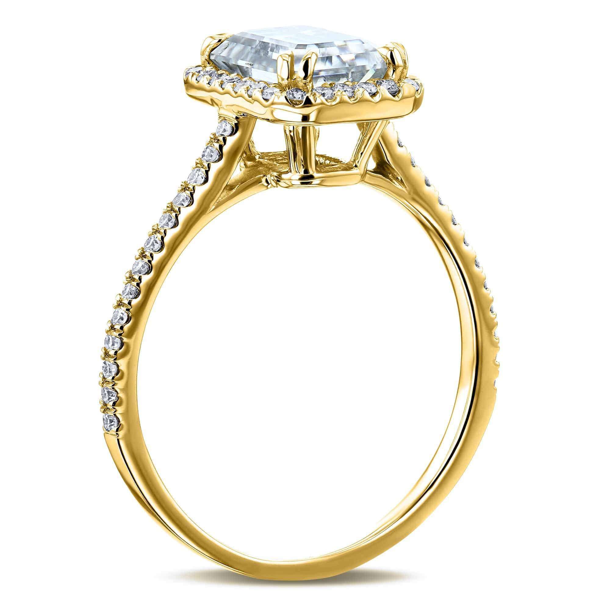 Kobelli 1.75ct Emerald Cut Moissanite and Lab Grown Diamond Halo Slender Engagement Ring in 14k Gold