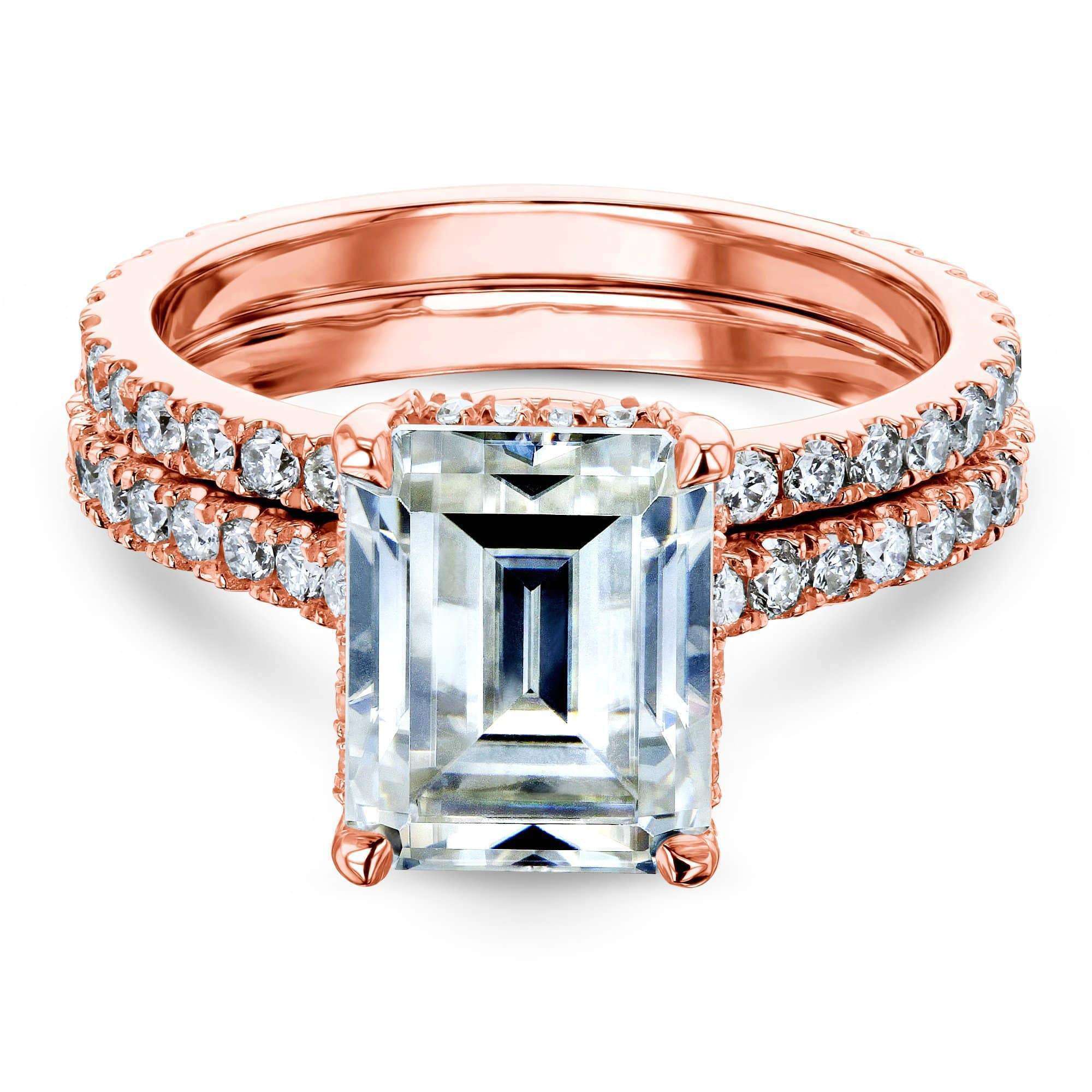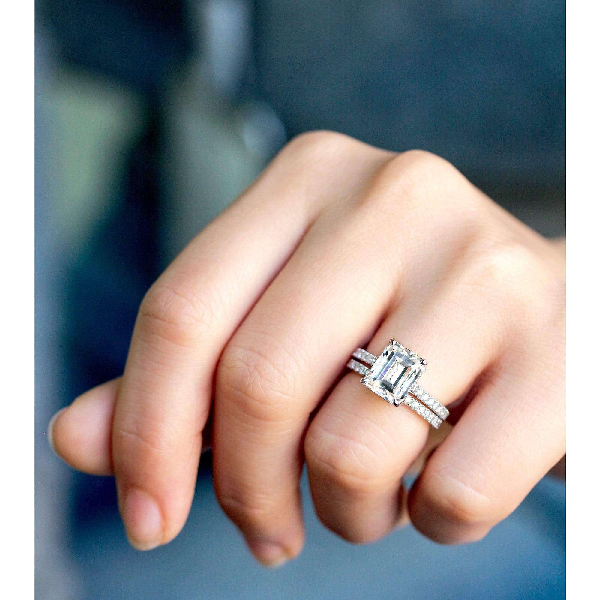 Center Weight: 2 1/2 Carat (diamond equivalent weight; 9x7mm emerald-cut)