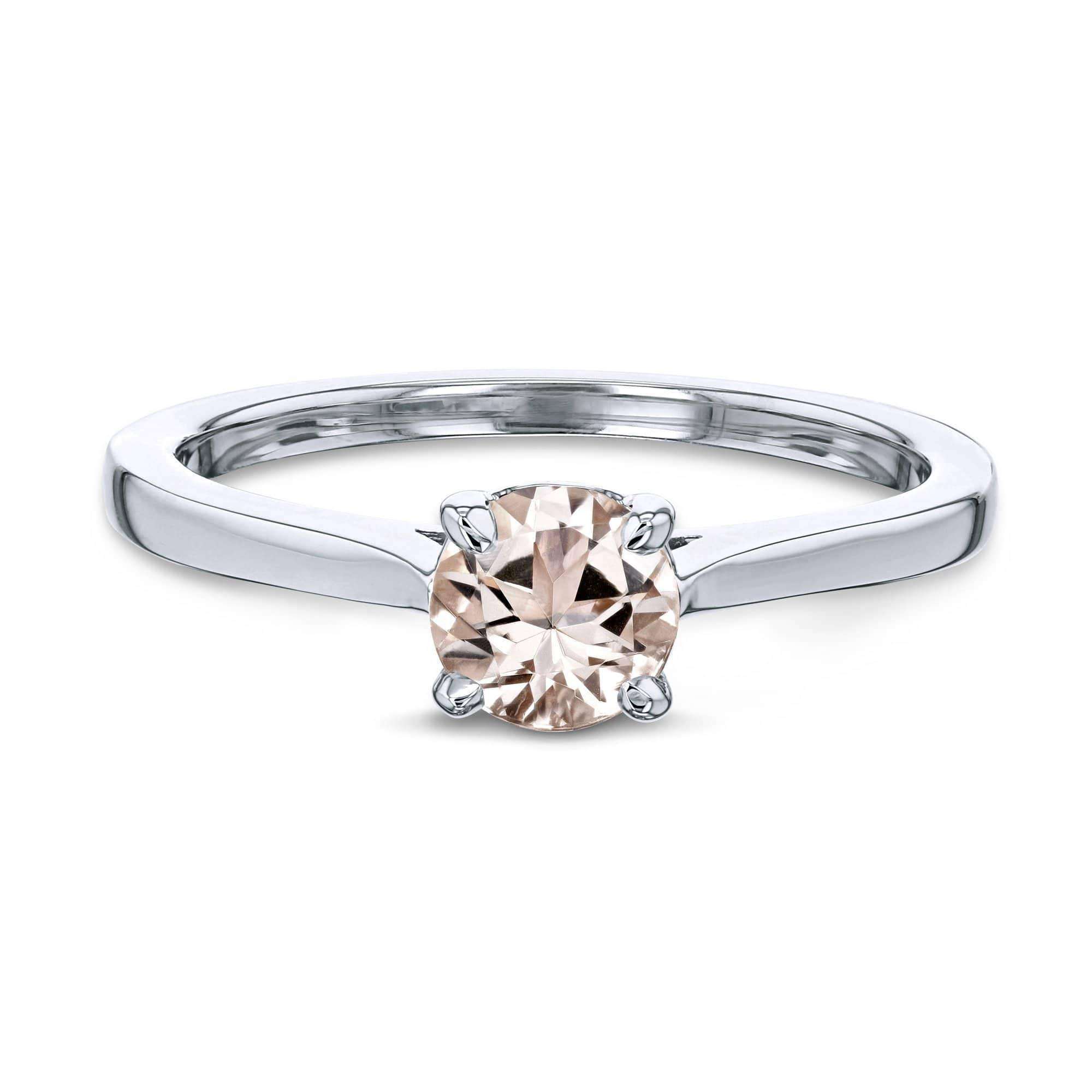 Our 5mm round solitaire boasts a beautifully subtle light peachy pink gemstone that is none other than the highly praised morganite. Morganite showcases a trendy light rose champagne color. Popularity on the rise, this Earth grown pink gem is one you will cherish for a lifetime.