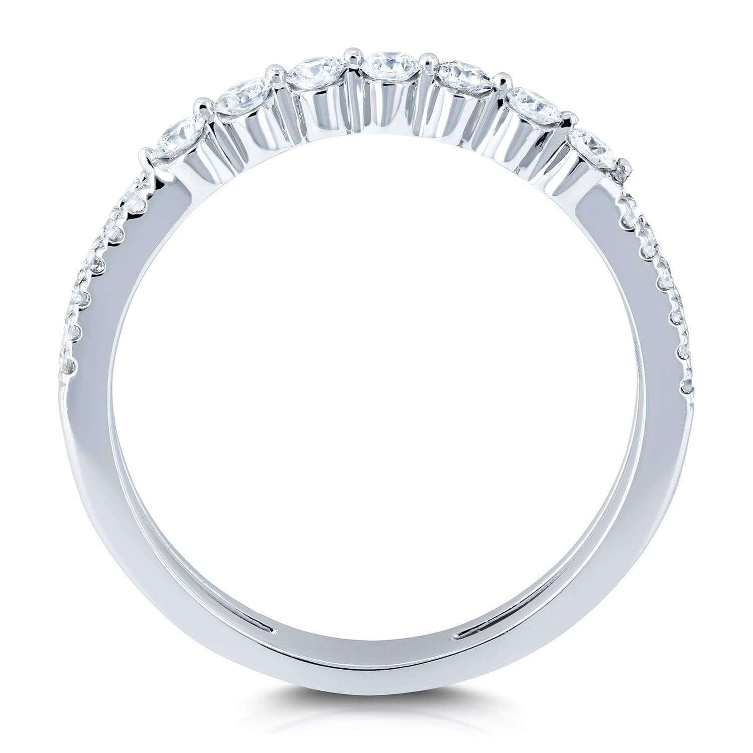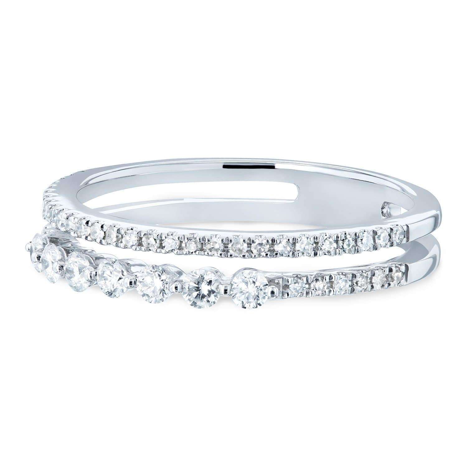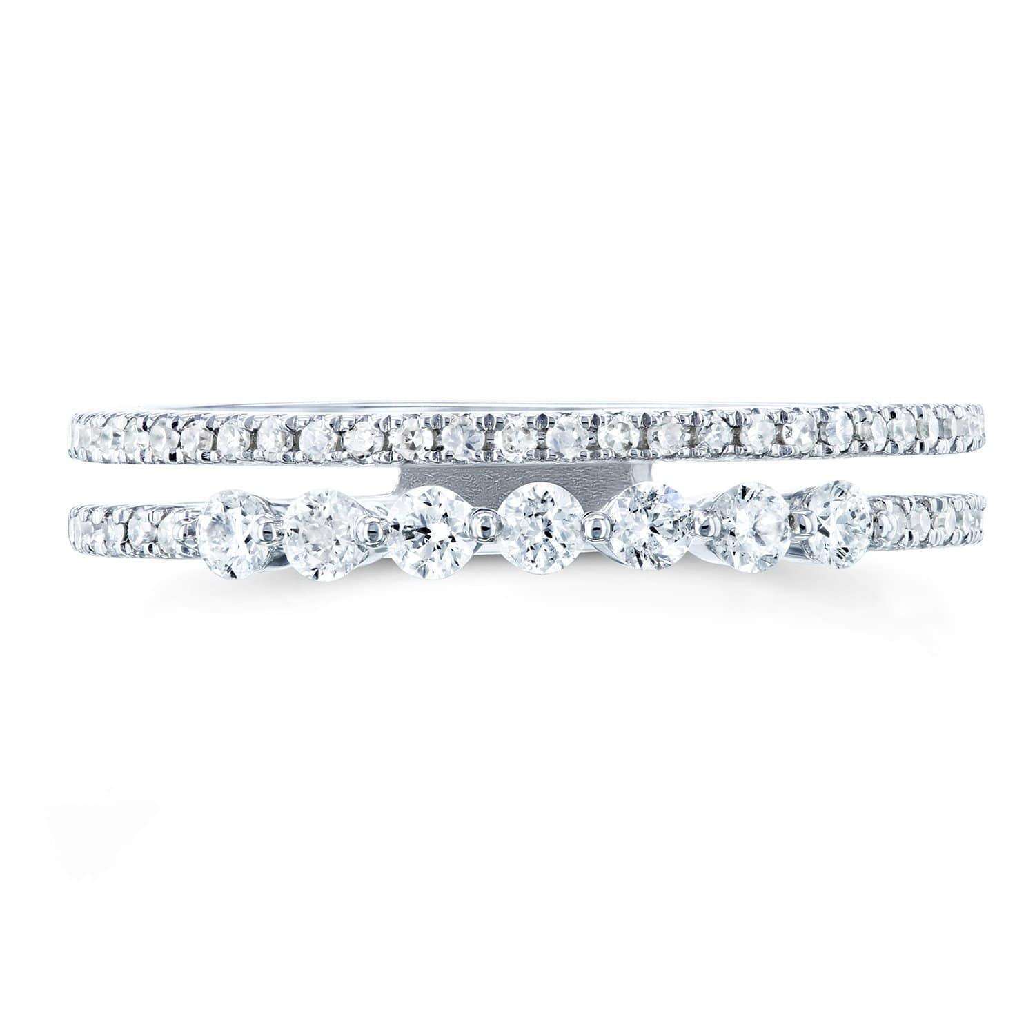 Two rows of diamonds run parallel to each other across this white gold fashion ring. The stylish modern design matches easily to any outfit for a chic flair.