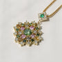 Wondrous pastel colors bloom from this green-centered pendant in a patterned ornate fashion. The high-grade gemstones embellish a solid 18-karat yellow gold pendant and comes strung to an 18-inch 18-karat yellow gold franco chain.