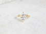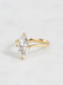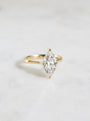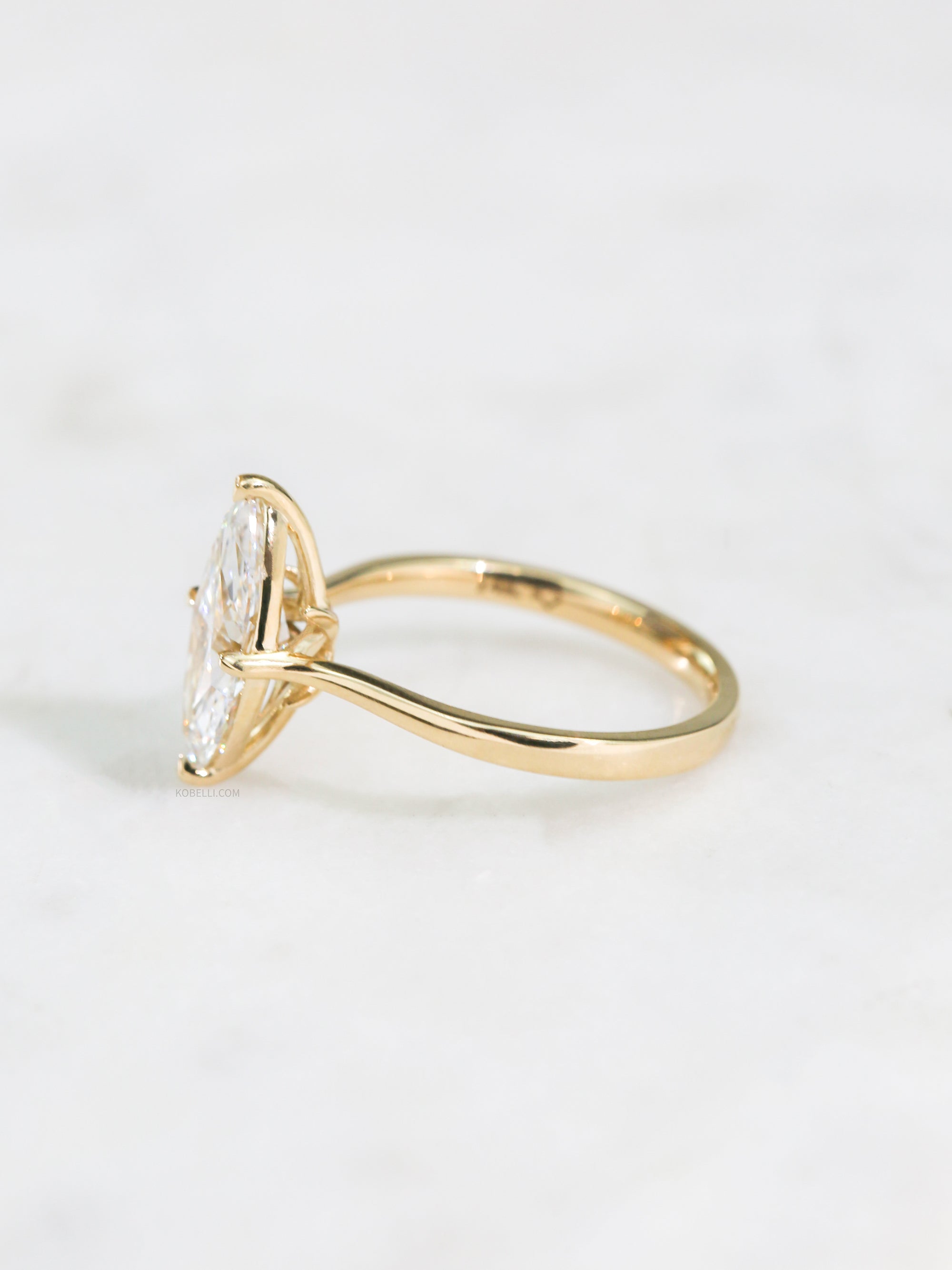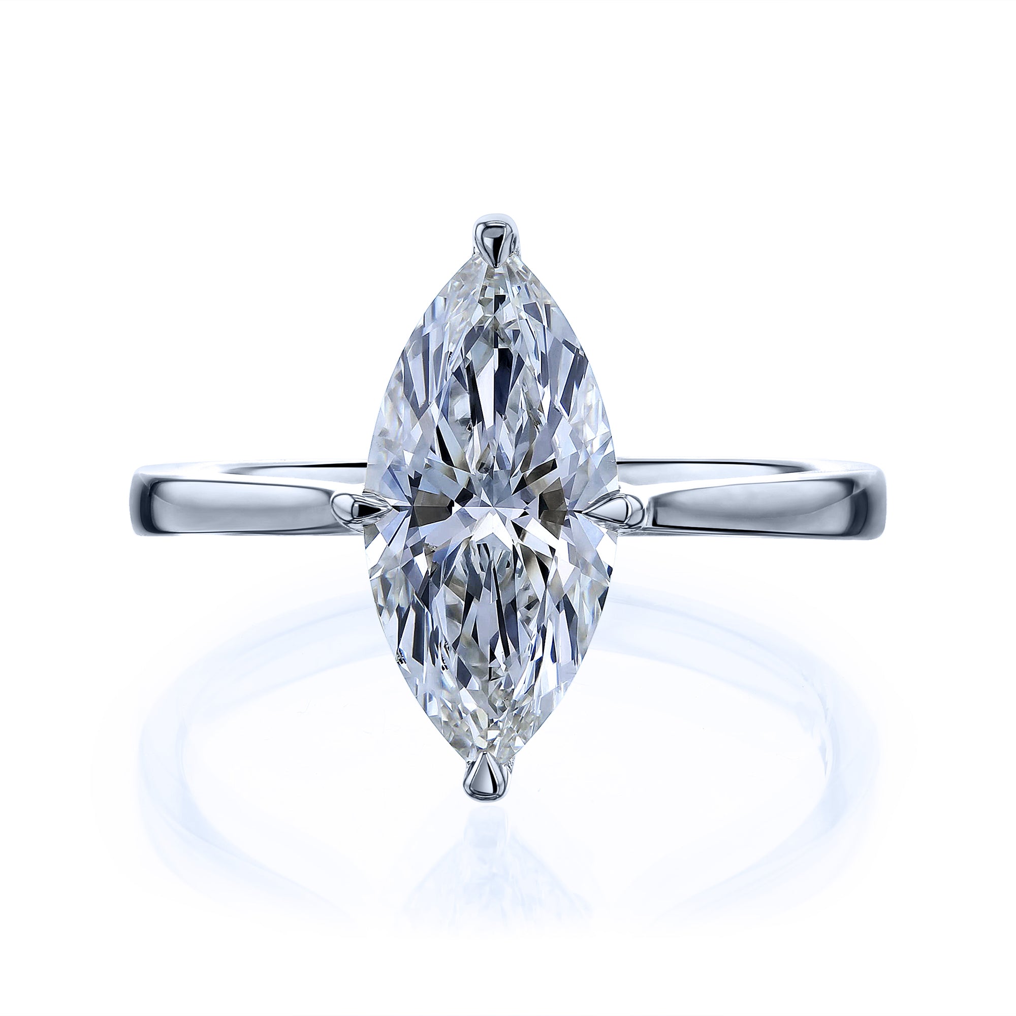 A solitaire 2 carat marquise-cut diamond tops this minimalistic engagement ring in a clean design. The underside of your center encloses a charming compass motif, taking your boundless quests readily though your journey of never-ending commitment.