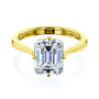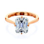 A solitaire 2.45 carat emerald-cut moissanite tops this minimalistic engagement ring in a clean design. The underside of your center hides away an adoring compass motif, taking your boundless quests readily though your journey of never-ending commitment.