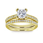 The trellis design on the engagement ring carries the princess gemstone in a fashionable prong setting with continuous flowing curves bringing admirable glimmers.