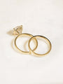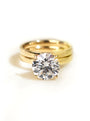 A four-carat round-cut diamond tops this solid gold band. The ring is made with solid 14k gold in a high polish.