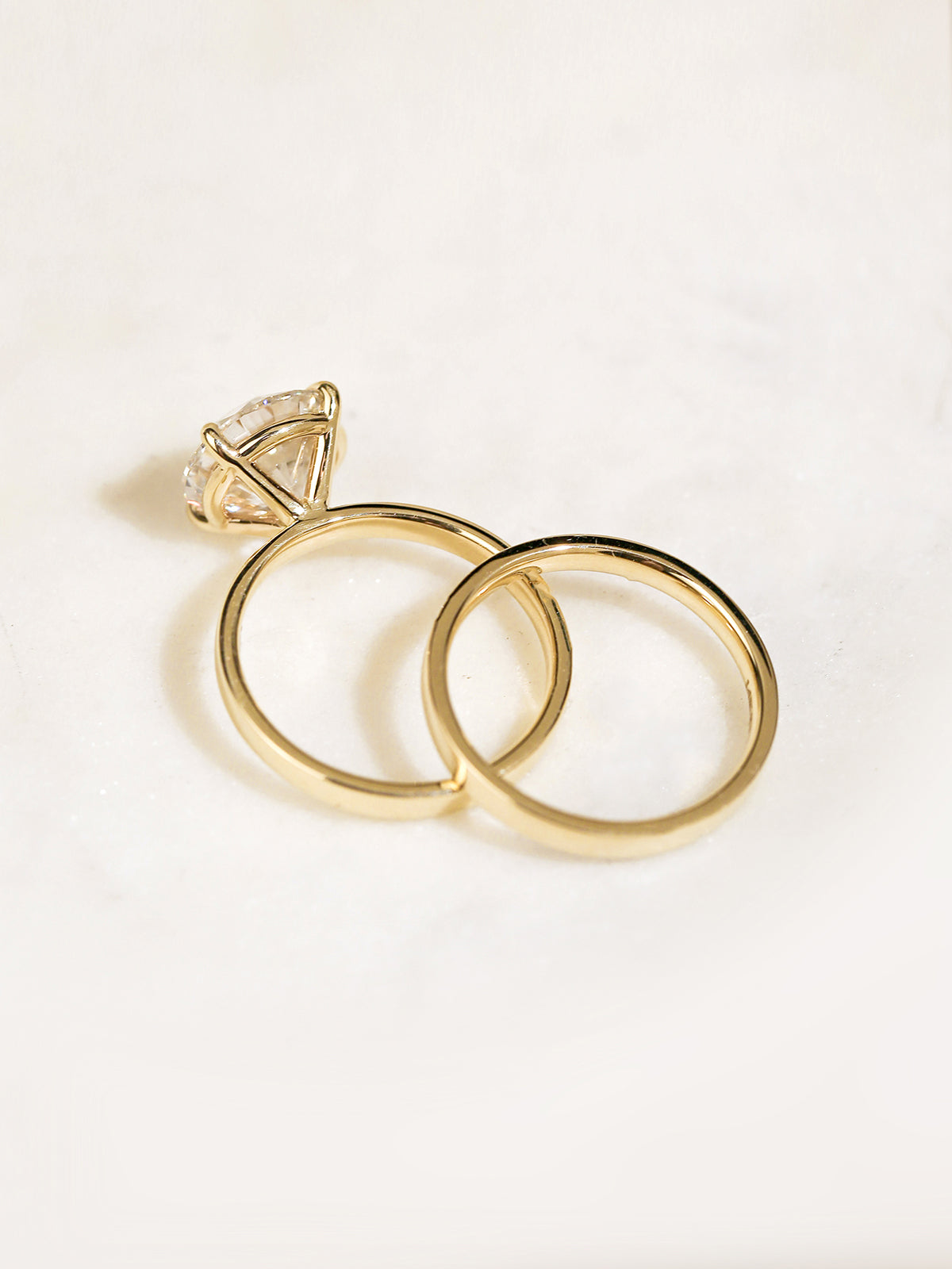 • 2.5 mm Cigar Band Engagement Ring (+ 2.5 mm Cigar Band Wedding Ring for Set)