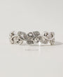 The two dozen diamonds are naturally cultivated from Earth and sourced to us by conflict-free methods. The ring is comprised of solid 14-karat white gold and a high polish finish.