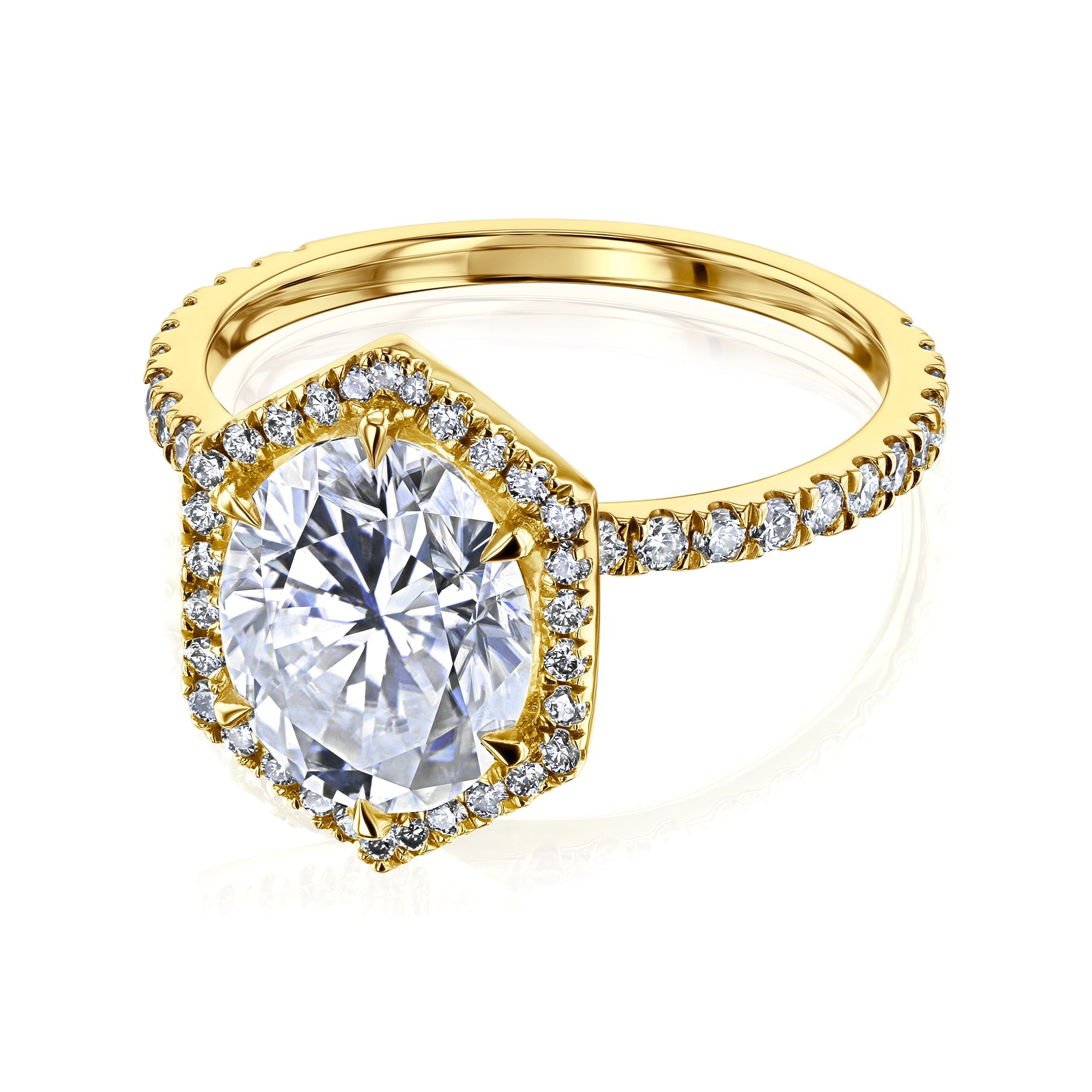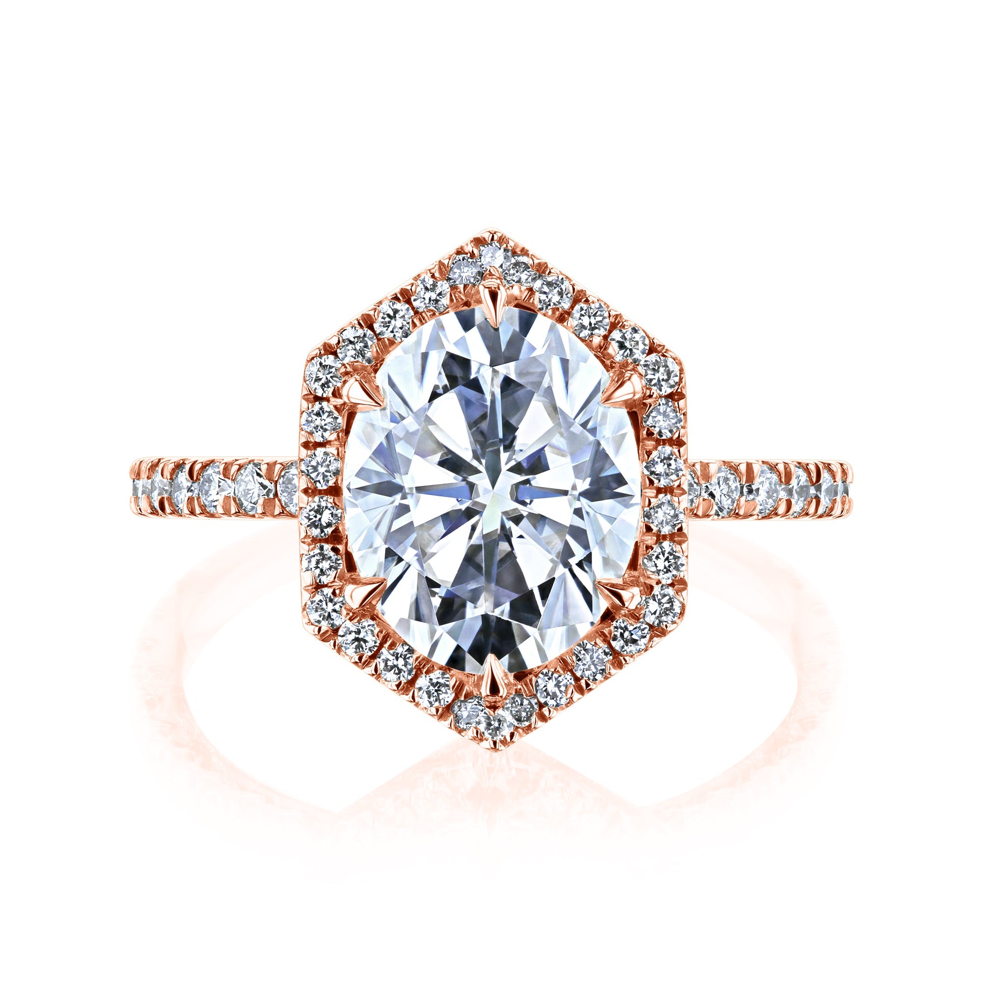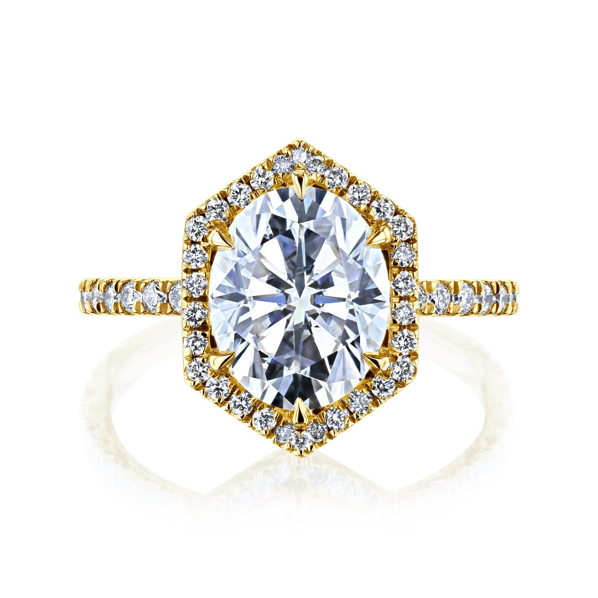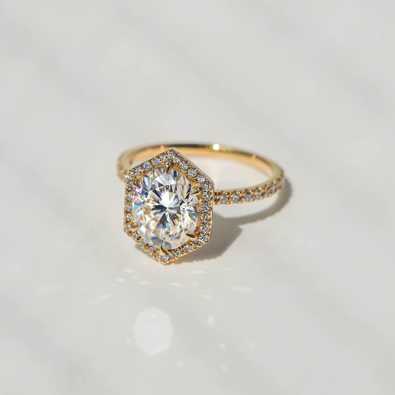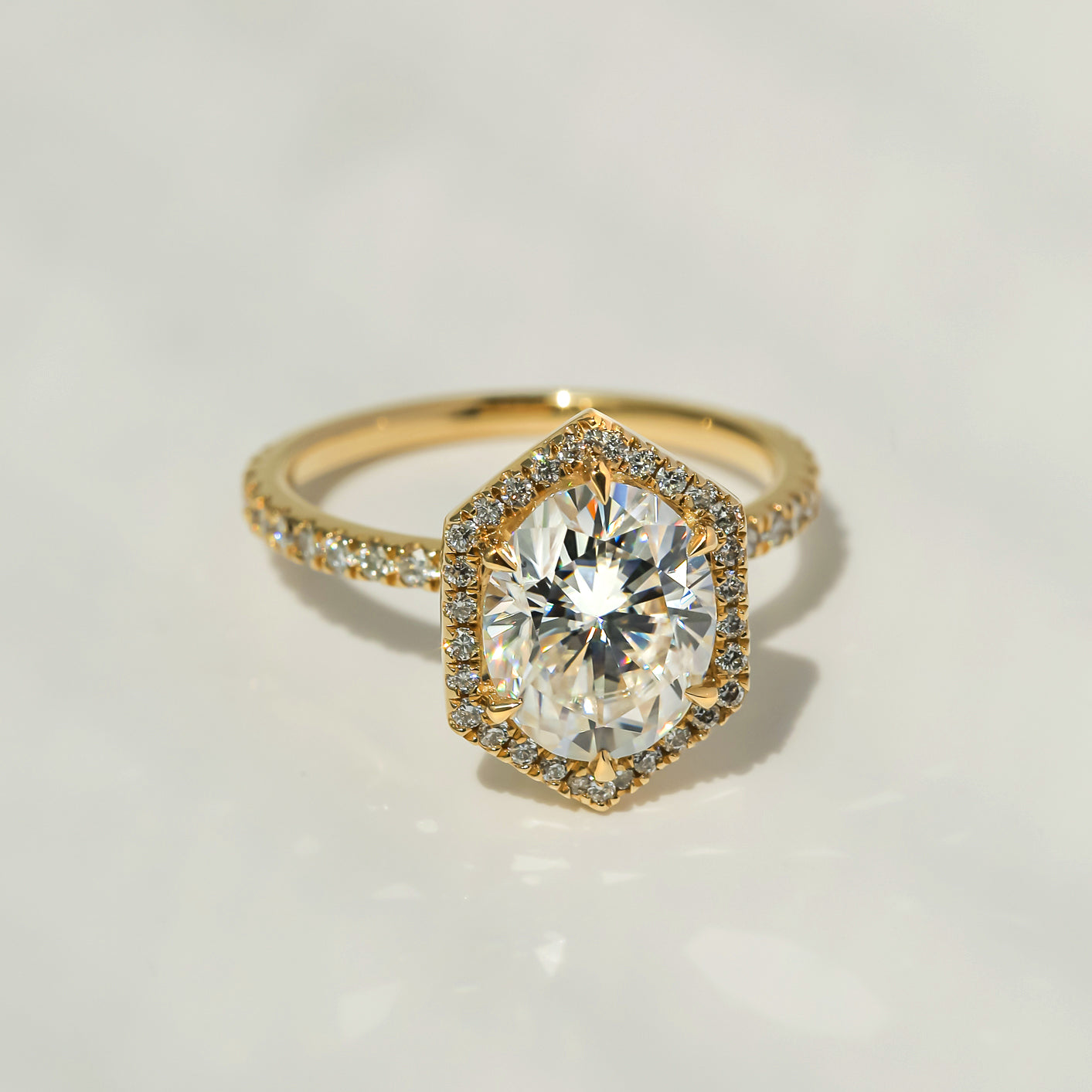 Hexagon Halo 3ct Oval Moissanite & 0.50ct Diamond Vintage Style Engagement Ring - 3.50ct.tw in 14k Gold