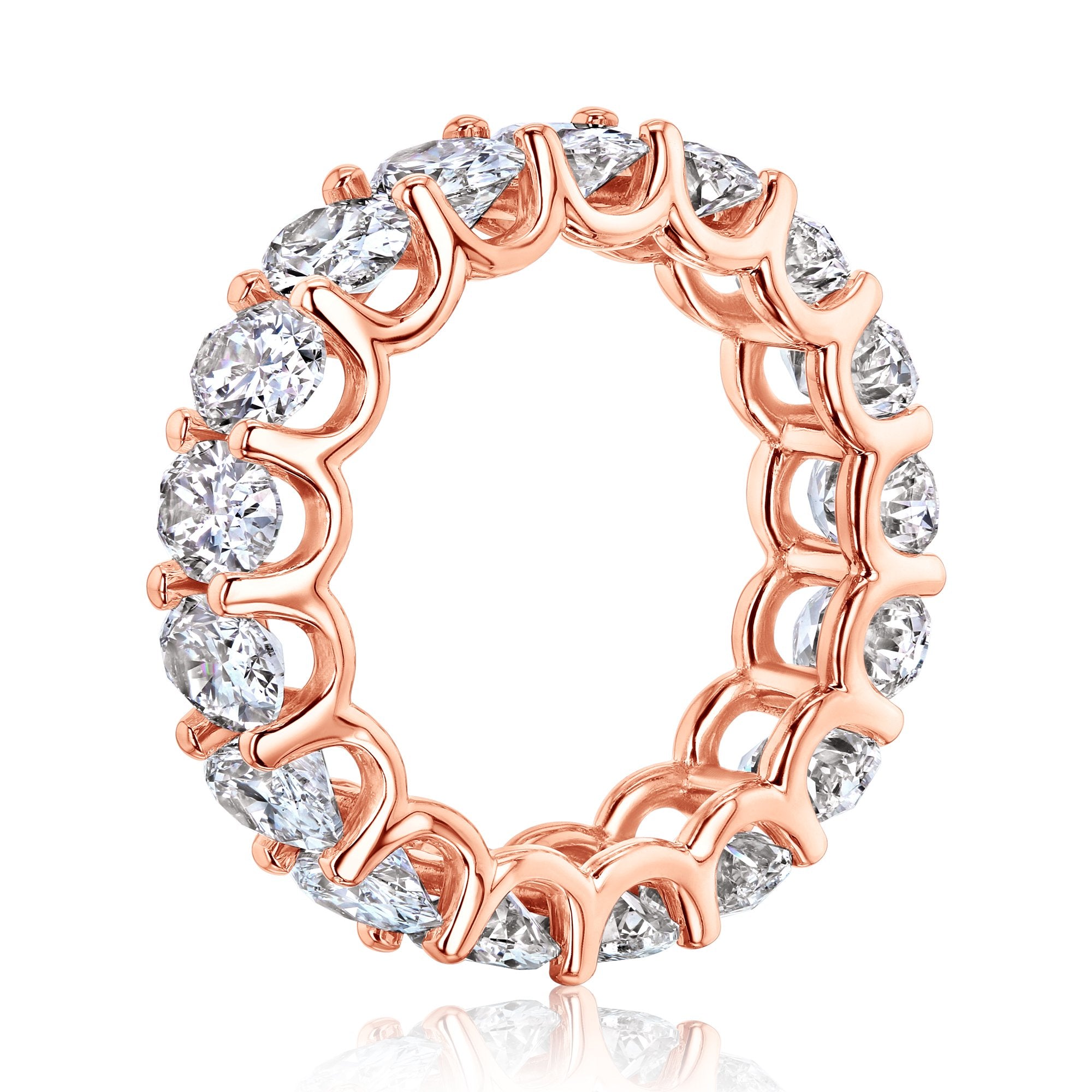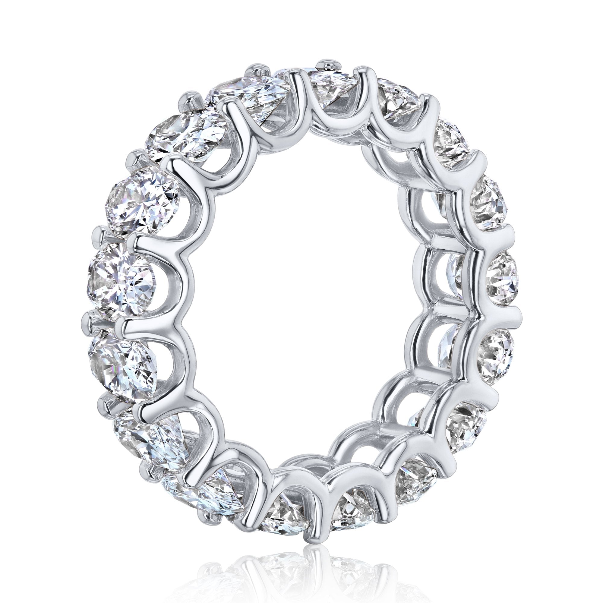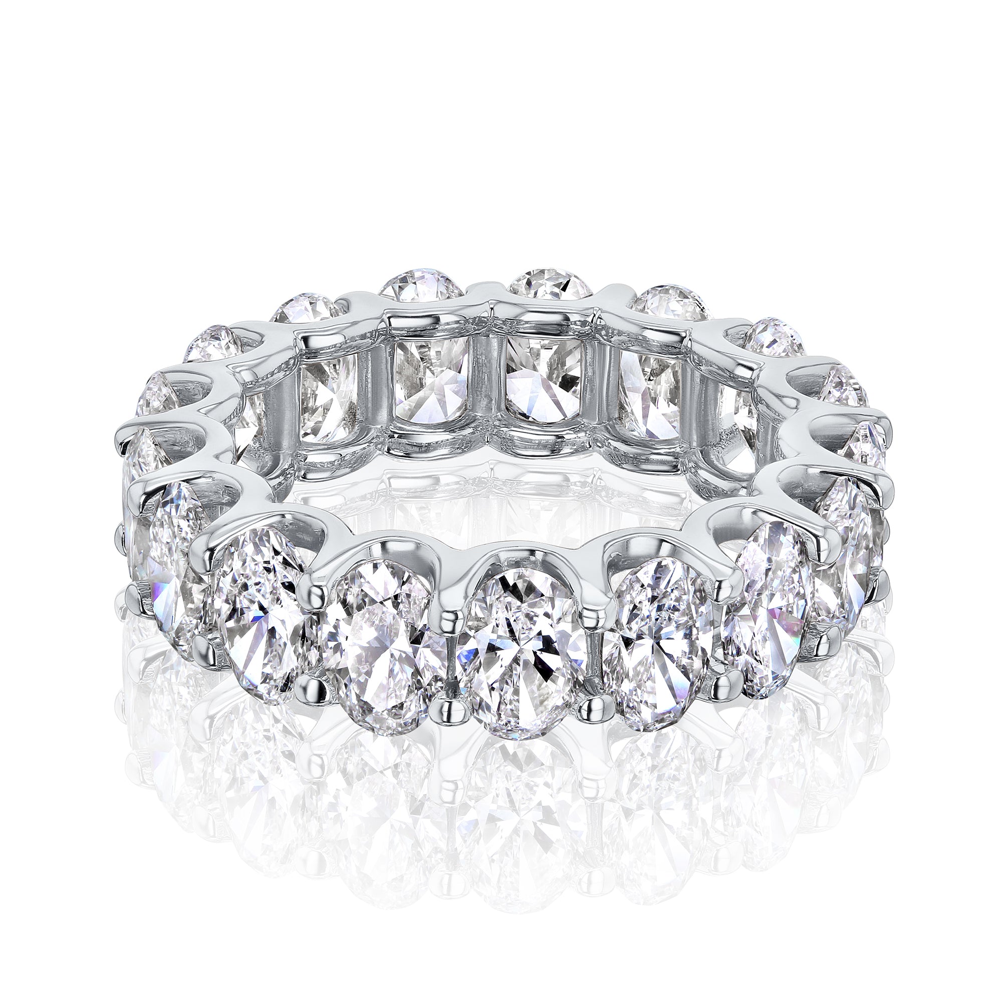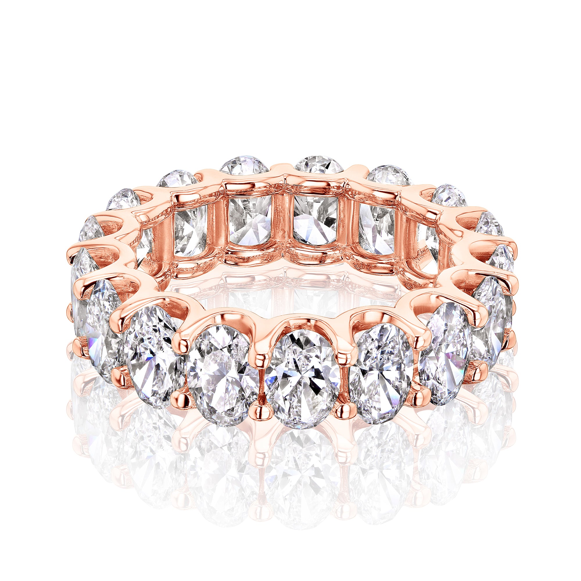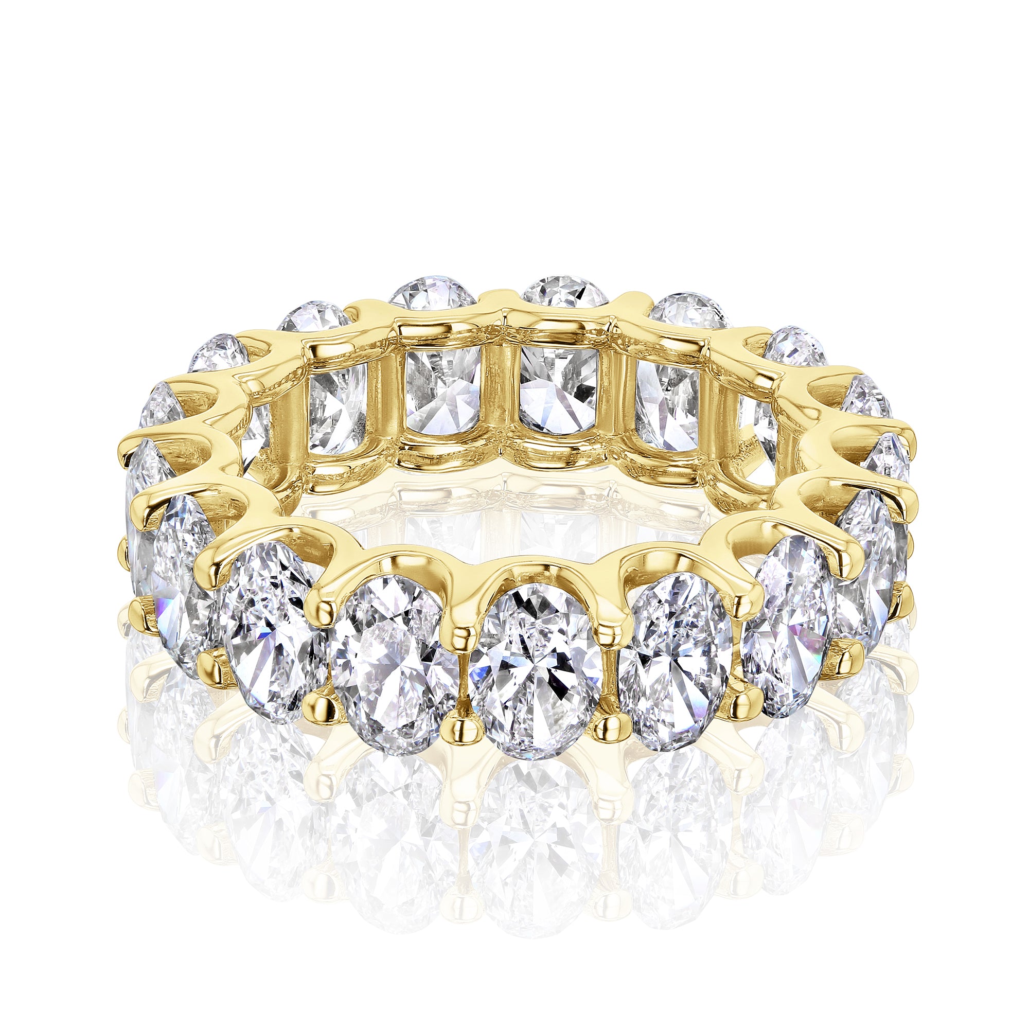 An endless loop of oval-cut lab-grown diamonds circulates solid 14-karat gold in this timeless eternity style women's wedding band. Smooth arches of prong settings carry each stone. Every arch serves as a gateway for natural light to enter the underside of the gemstones drawing out the ultimate brilliance of every rock.