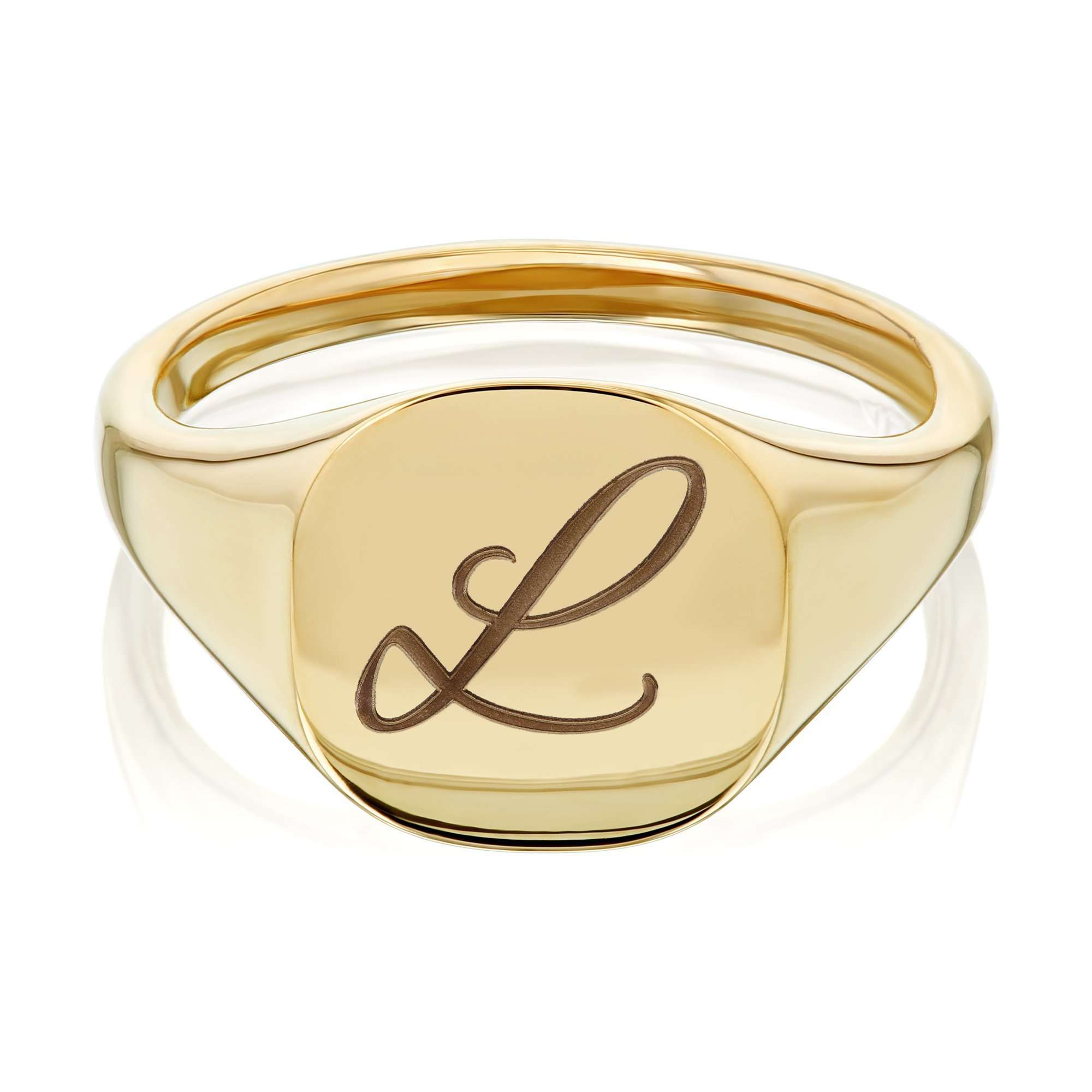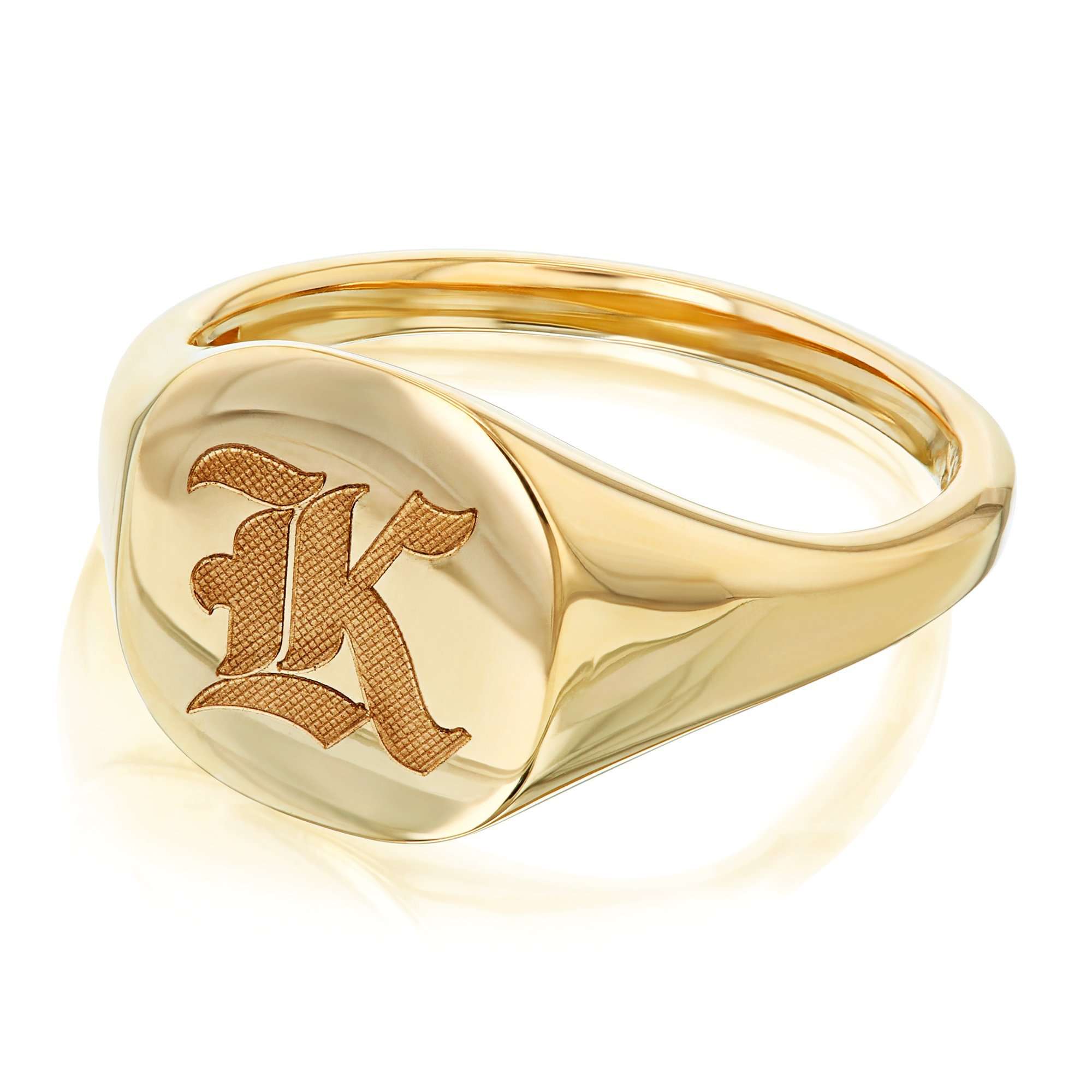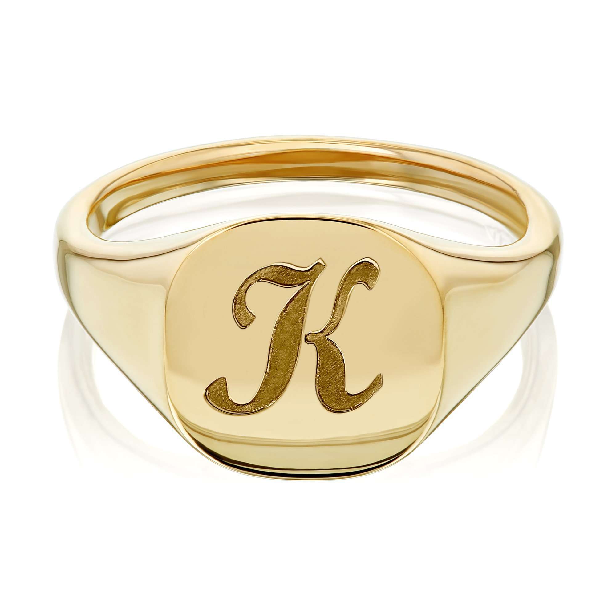 KOBELLI PERSONALIZED SIGNET INITIAL CUSHION 14K GOLD RING