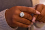 All photos on this product are taken in-house with real stock set with the described carat weight. The ring in the photos, including the model image, is a size 7.5.
