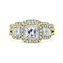 Three princess cut moissanites top this classic department-store style in 14-karat gold surrounded by natural white diamond accents.