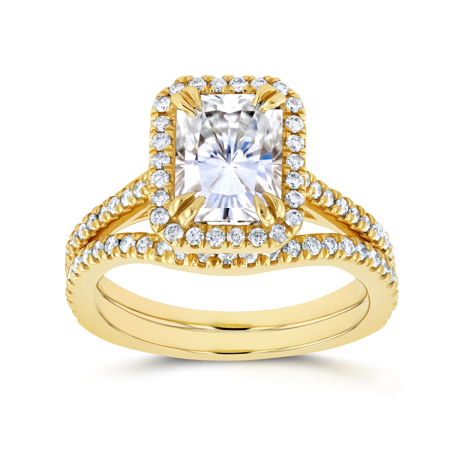 Radiant Moissanite and Diamond Bridal Set 2 1/4 CTW in 14k Yellow Gold