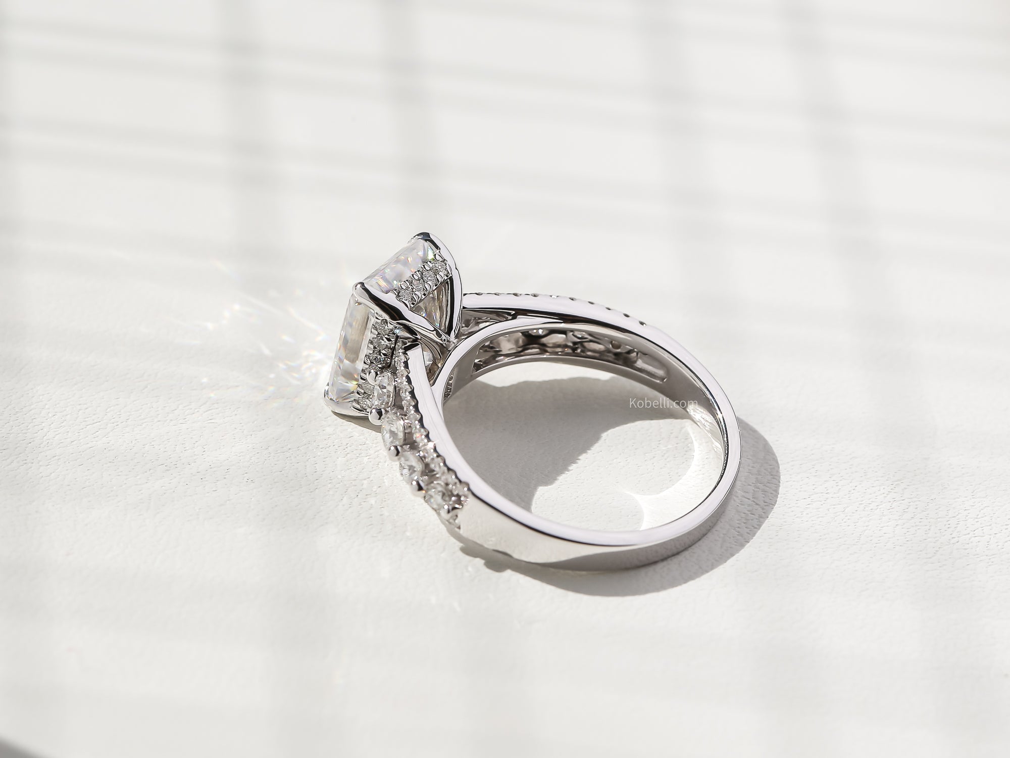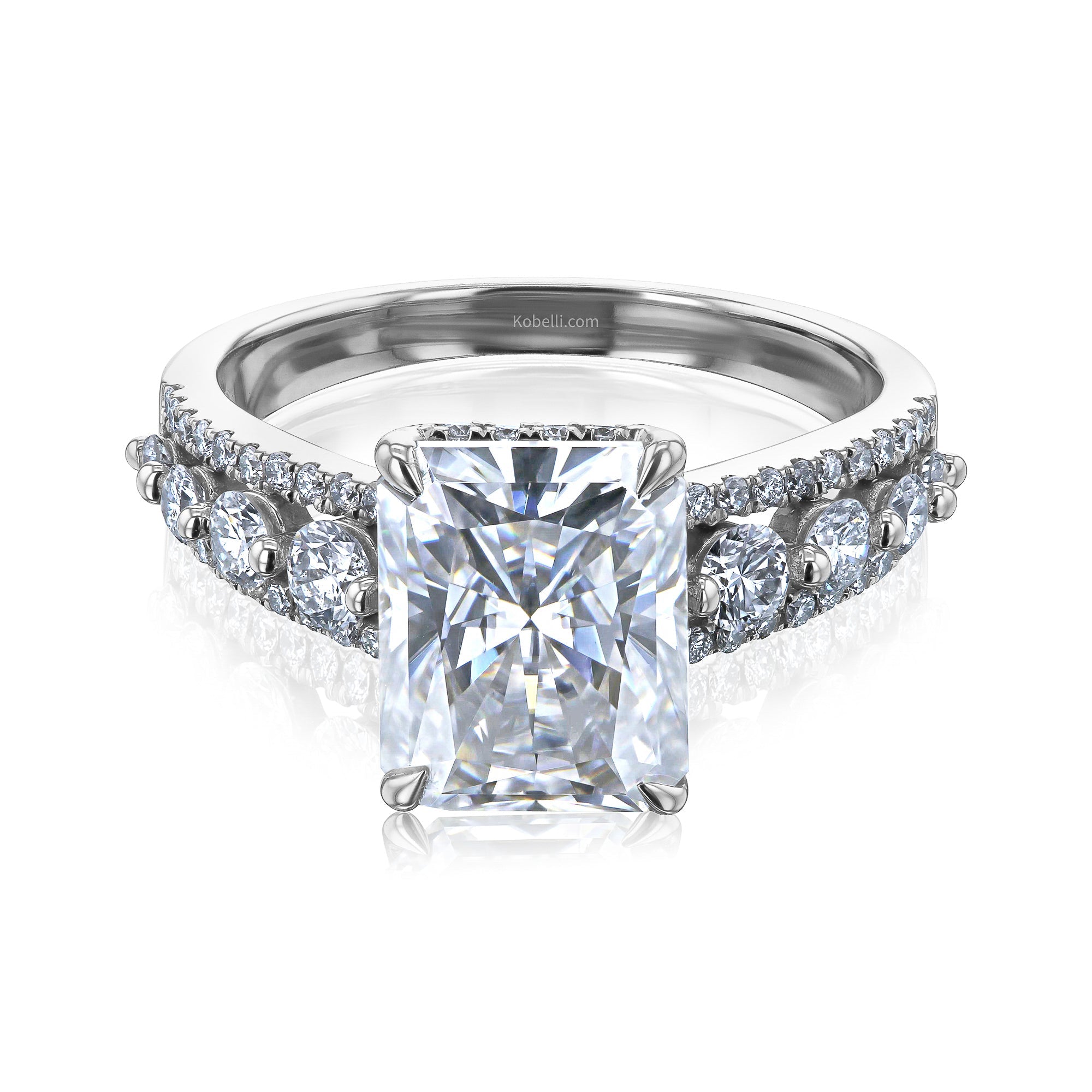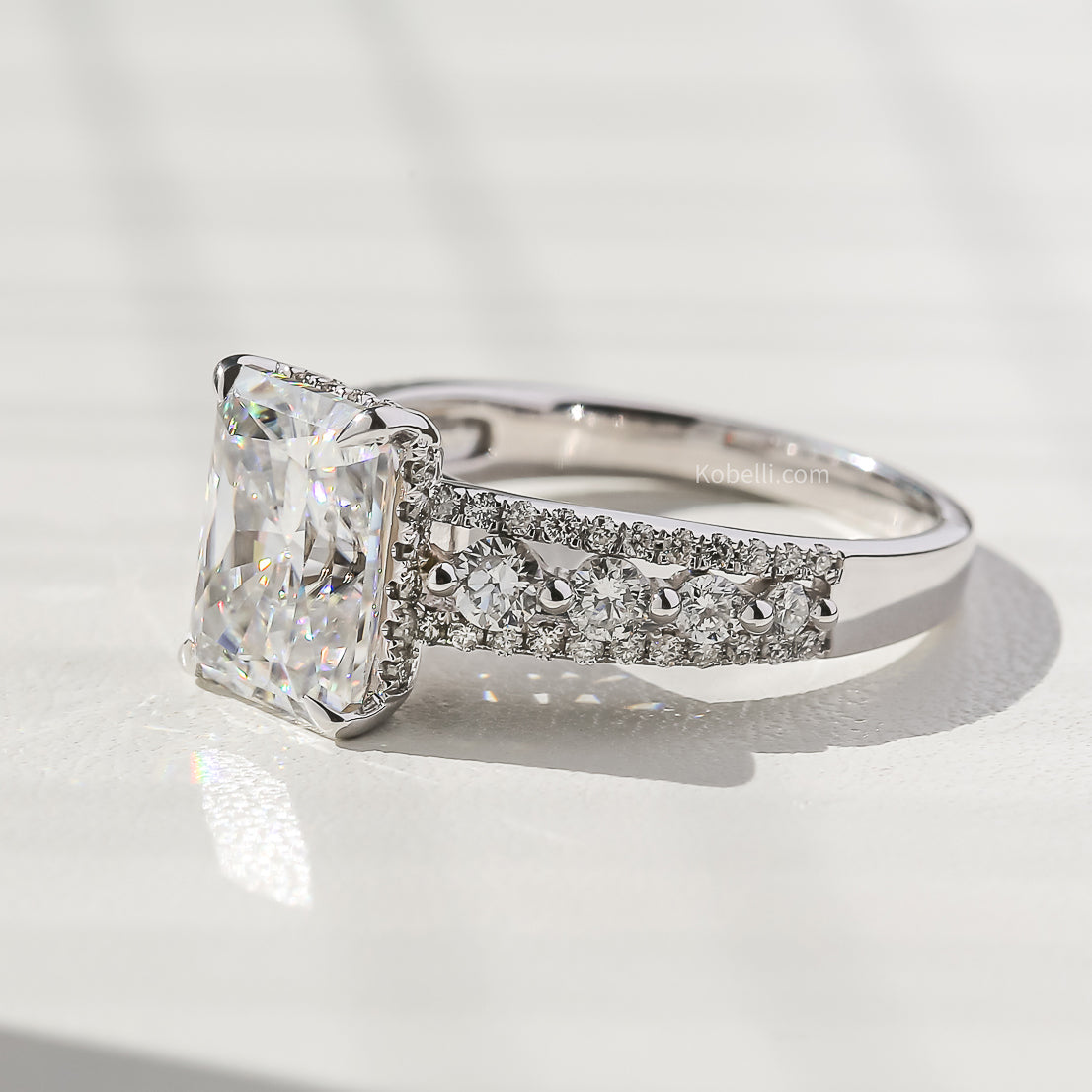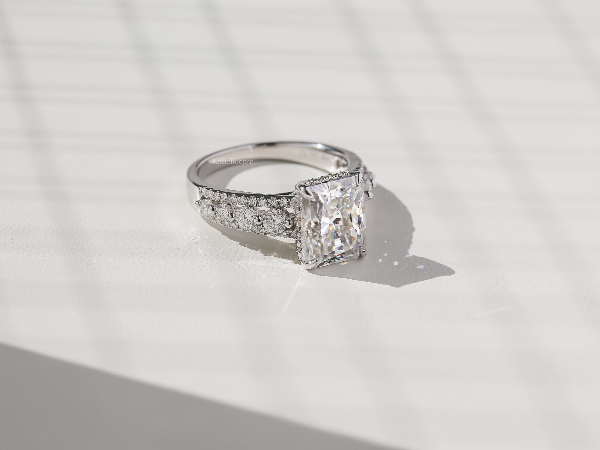 Radiant Moissanite & Round Diamonds Triple Row Engagement Ring