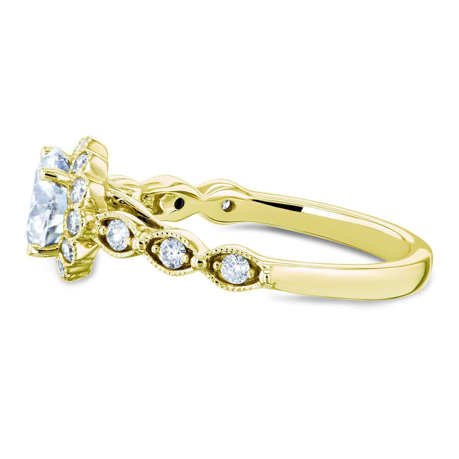 Round Forever One Moissanite and Diamond Floral Engagement Ring 1 1/3 CTW 14k Yellow Gold (DEF/VS, GH/I)
