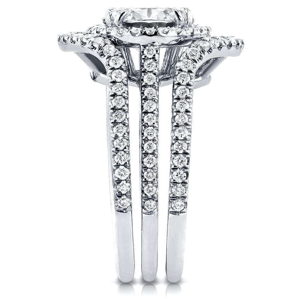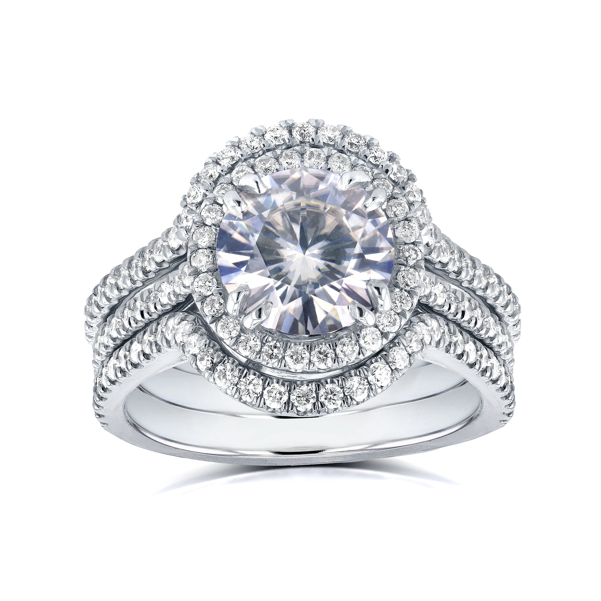 Round Moissanite and Diamond Bridal Rings Set 2 1/2 Carat (ctw) in 14k White Gold (3 Piece Set)