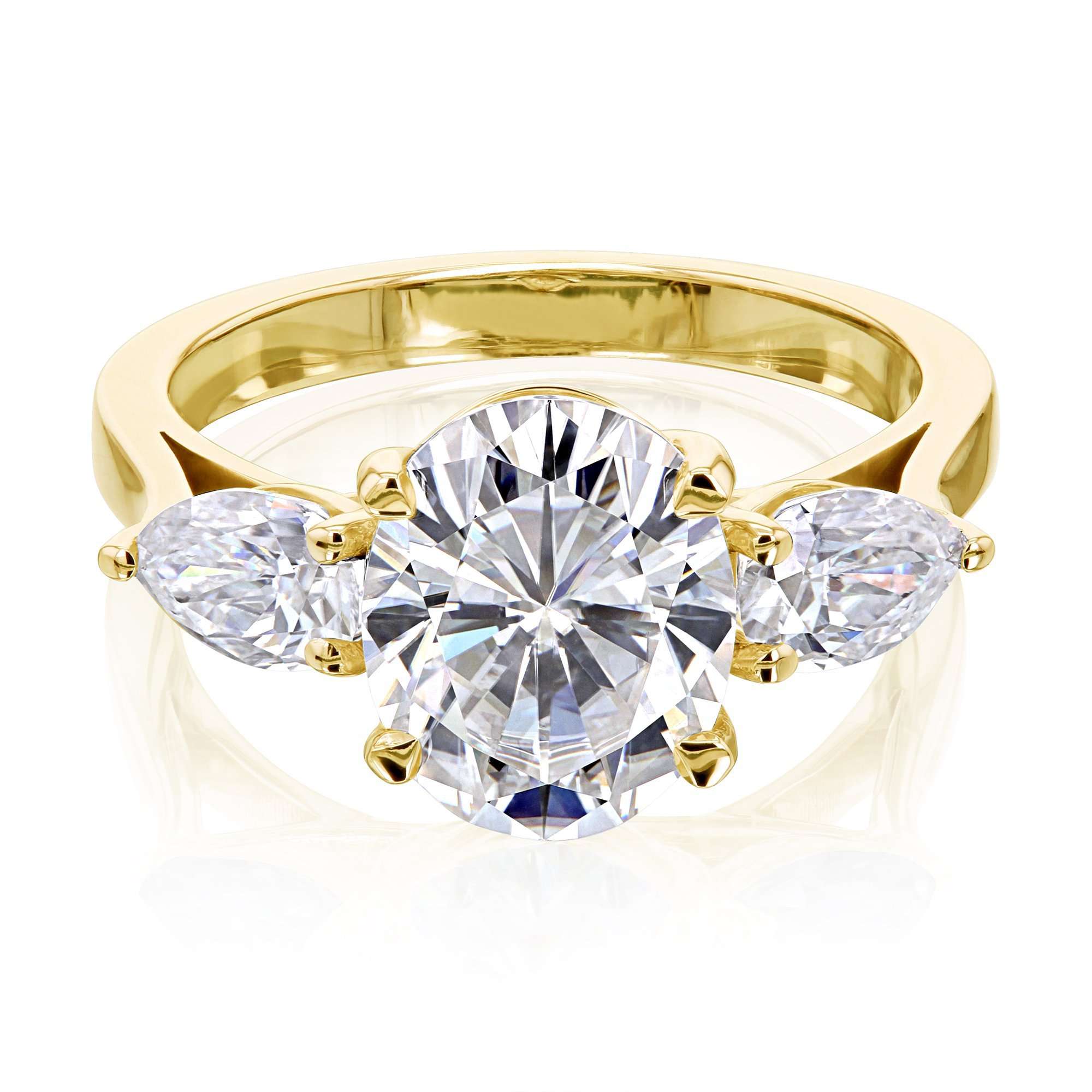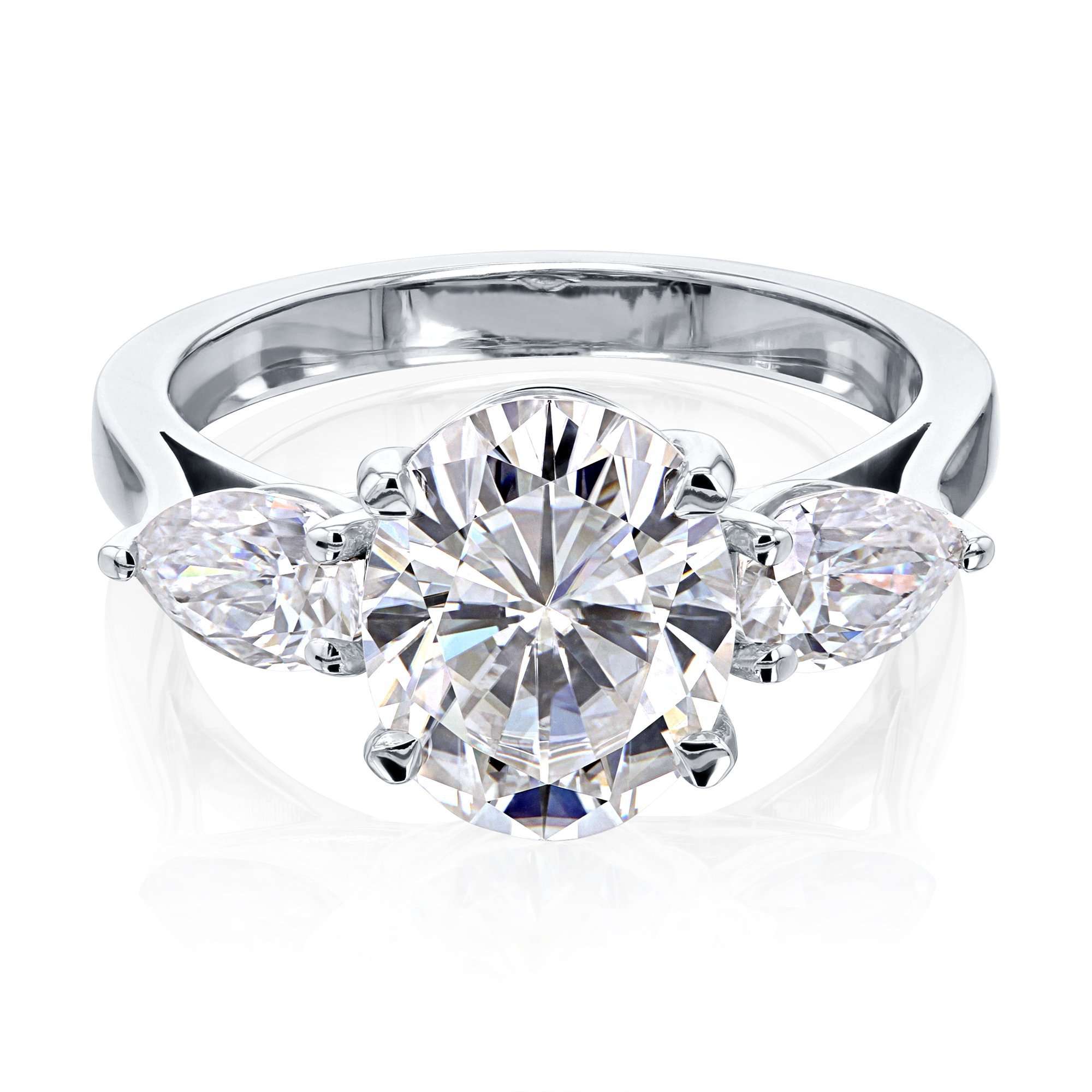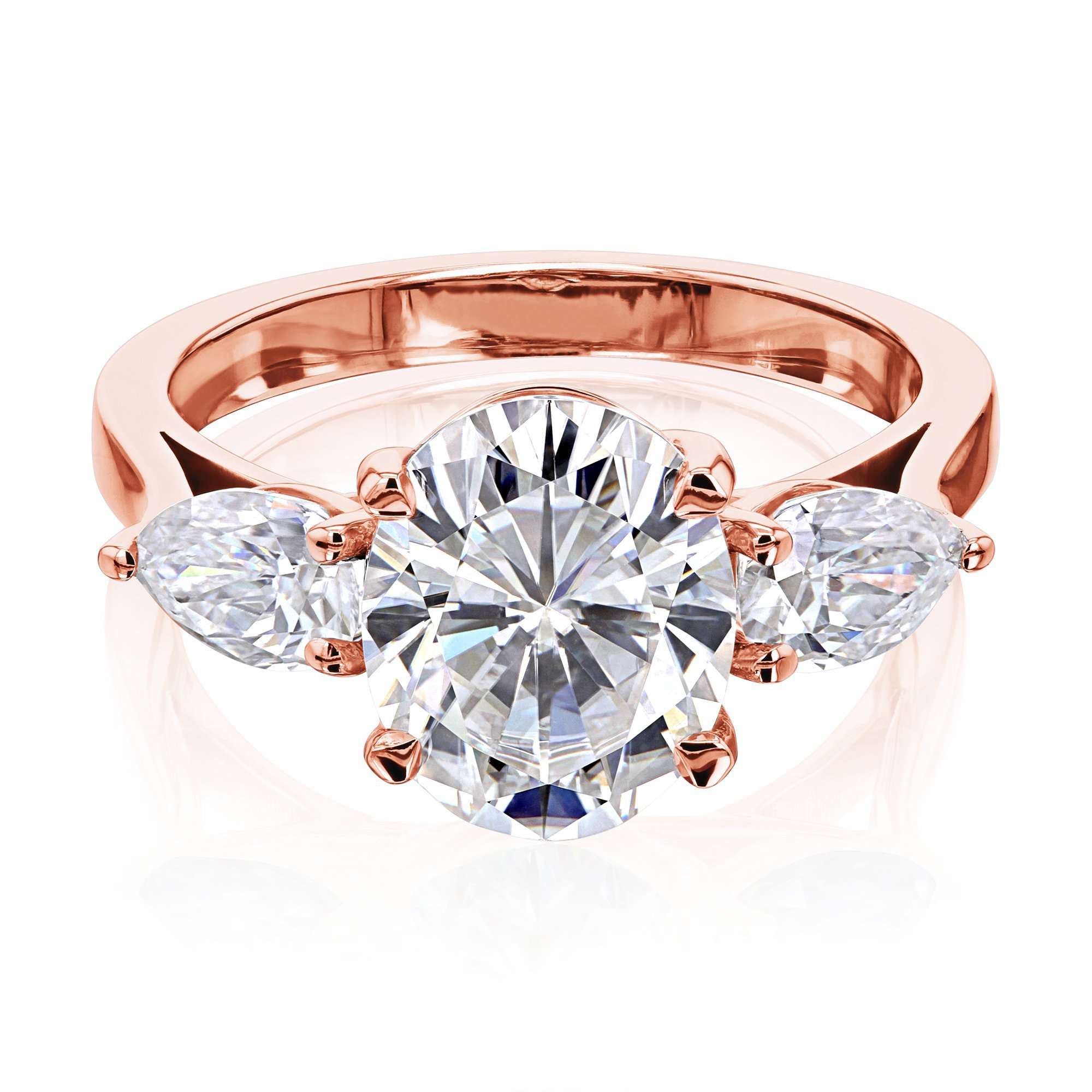 3.86 Carat Moissanite 3-Stone Oval & Pear Elena Ring