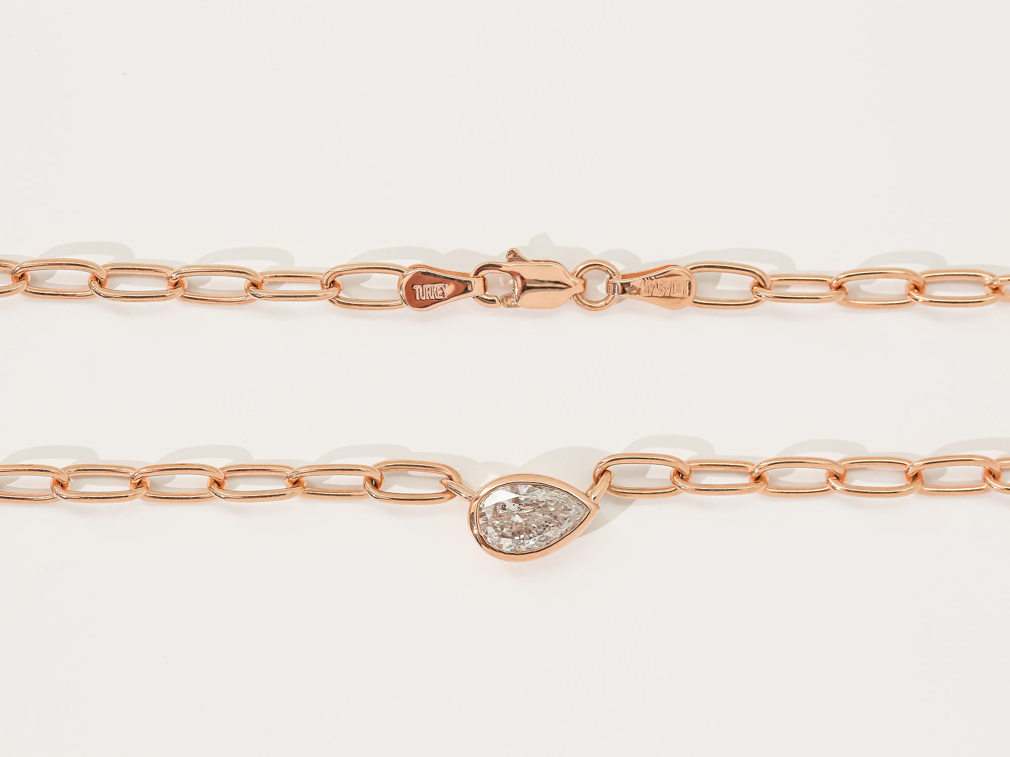 Bezel Pear Diamond Mini Paperclip Link Chain Rose Gold Necklace