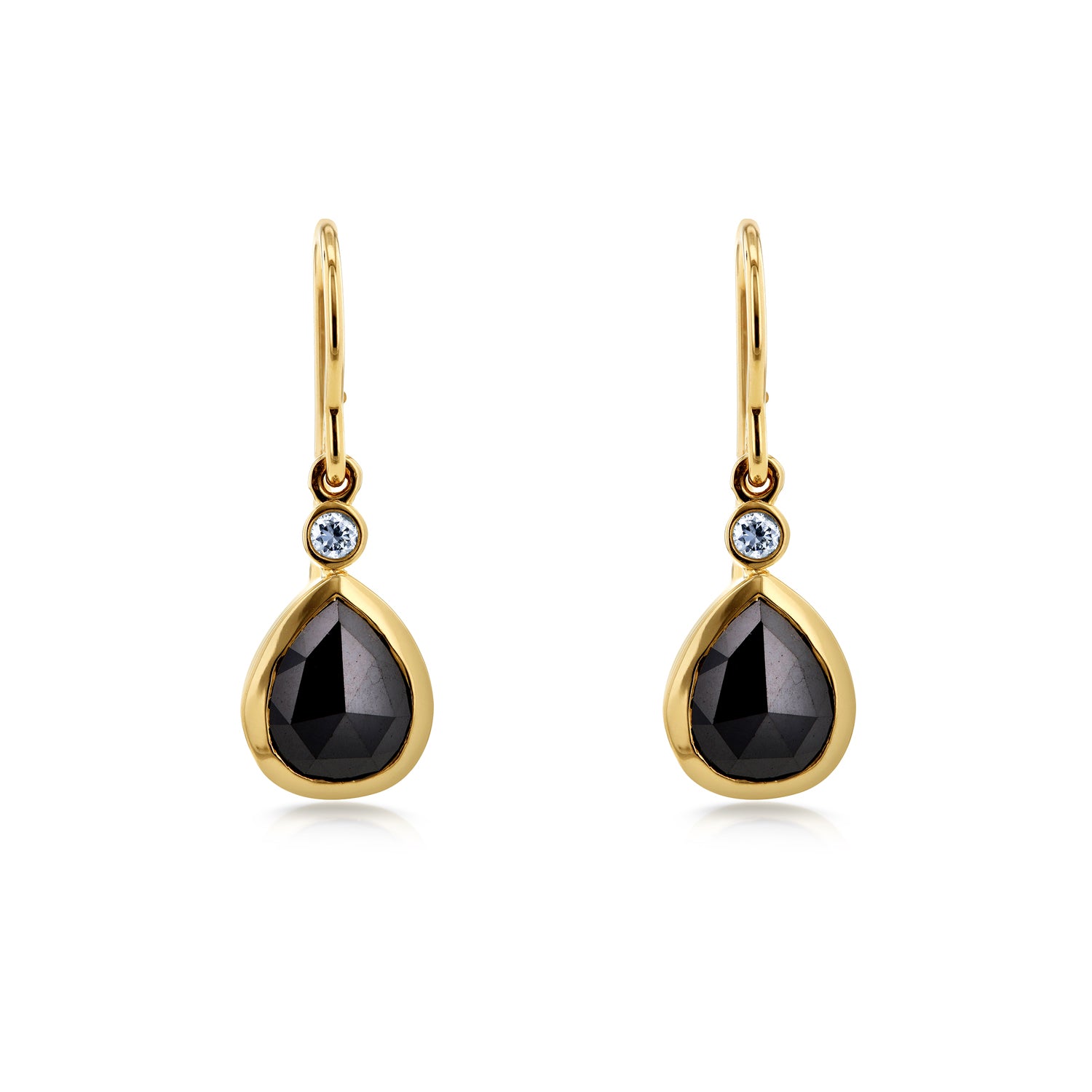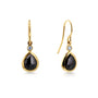 Pear Shape Black Diamond Fish Hook Earrings in 14k Yellow Gold
