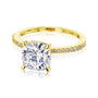 A perfect stunner, our Kobelli Cushion Petite Engagement Ring flaunts a 2 carat cushion-cut moissanite center stone with round edges carefully held by 4-prong loop pegs in a basket setting. This brilliant-cut cushion ring recreates an astonishing brilliance reflecting light well enough that it shines even in a fair amount of lighting. 22 round diamond side stones grace the 14K solid gold brand in a semi-eternity fashion. This enormous beauty a dream come to life.