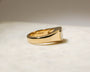 A simple yet bold design carries a single bezel-set diamond in solid 14-karat gold.