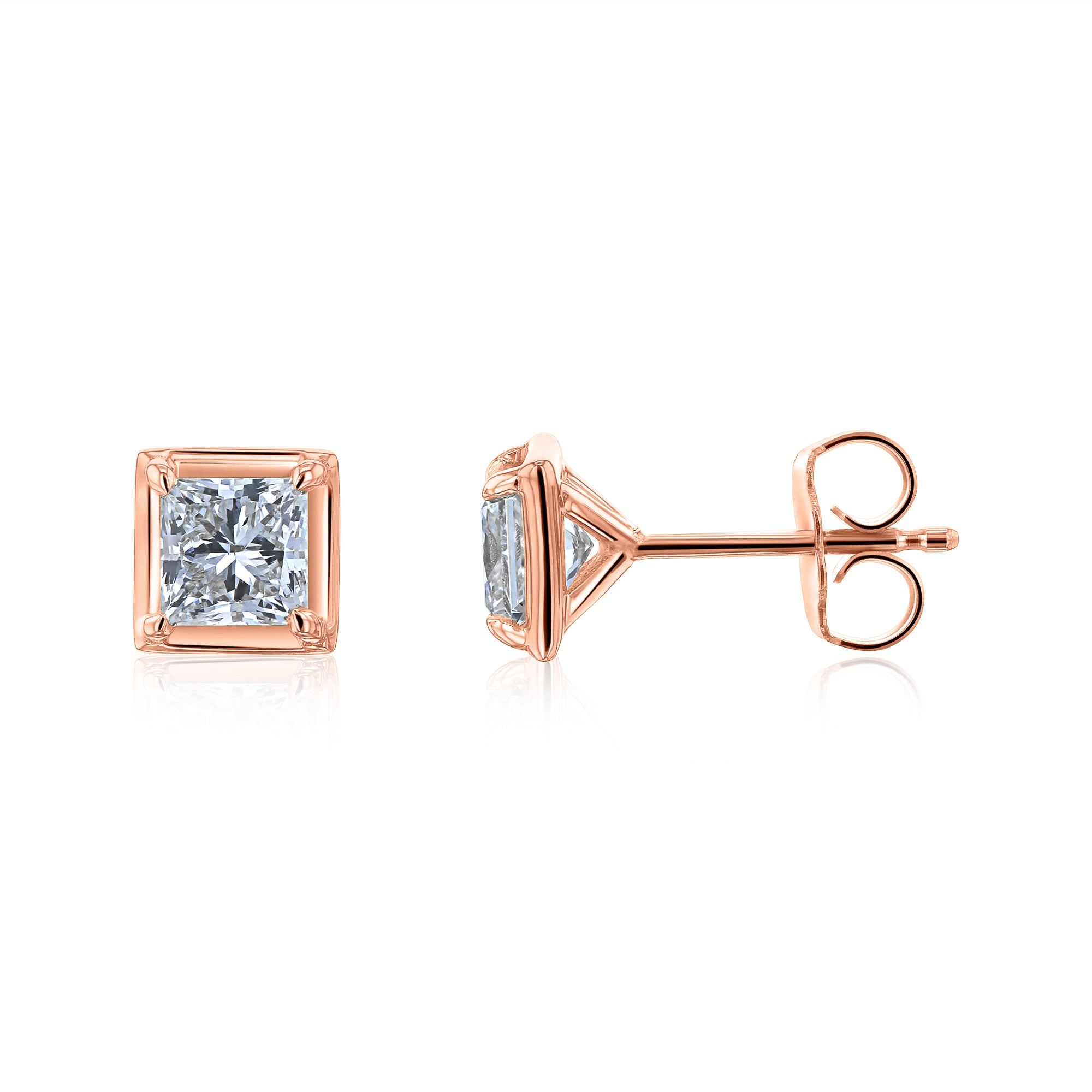 1 Carat Lab Grown Diamond Princess Chubby Bezel Studs