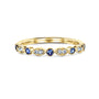 Eight natural white diamonds and five natural blue sapphires interchange along this patterned 14k gold ring. This fashionable piece works great for stacking to other rings or even as a wedding band.