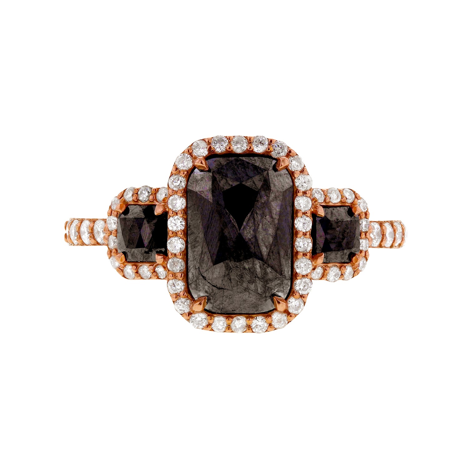 3.46 Carat Black Diamond Rustic 3-Stone Ring