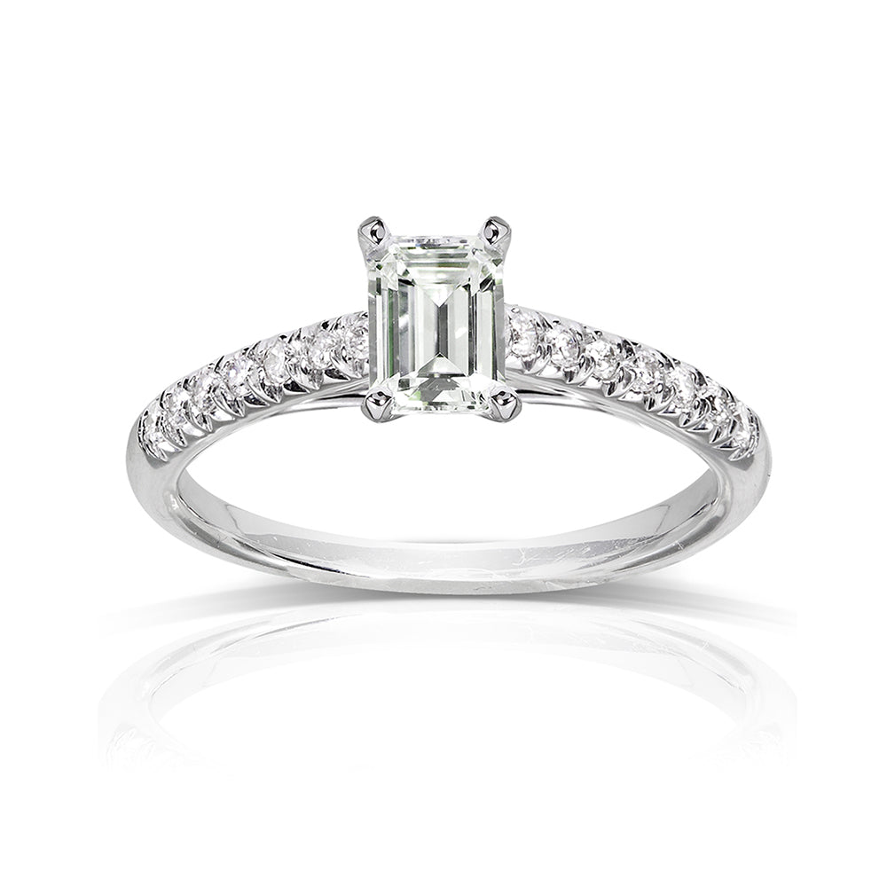 0.7 Carat Moissanite French Pavé Emerald Ring