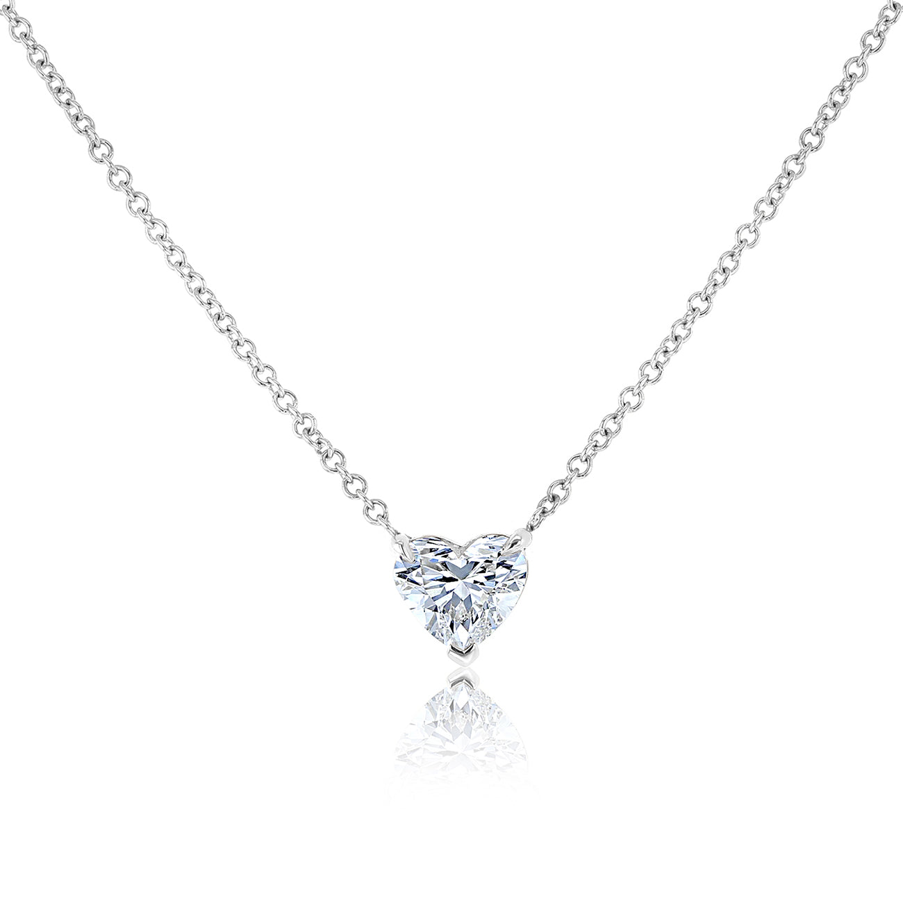 Floating Heart Diamond Necklace 3/4 CTW in 14K White Gold (Certified, SI)