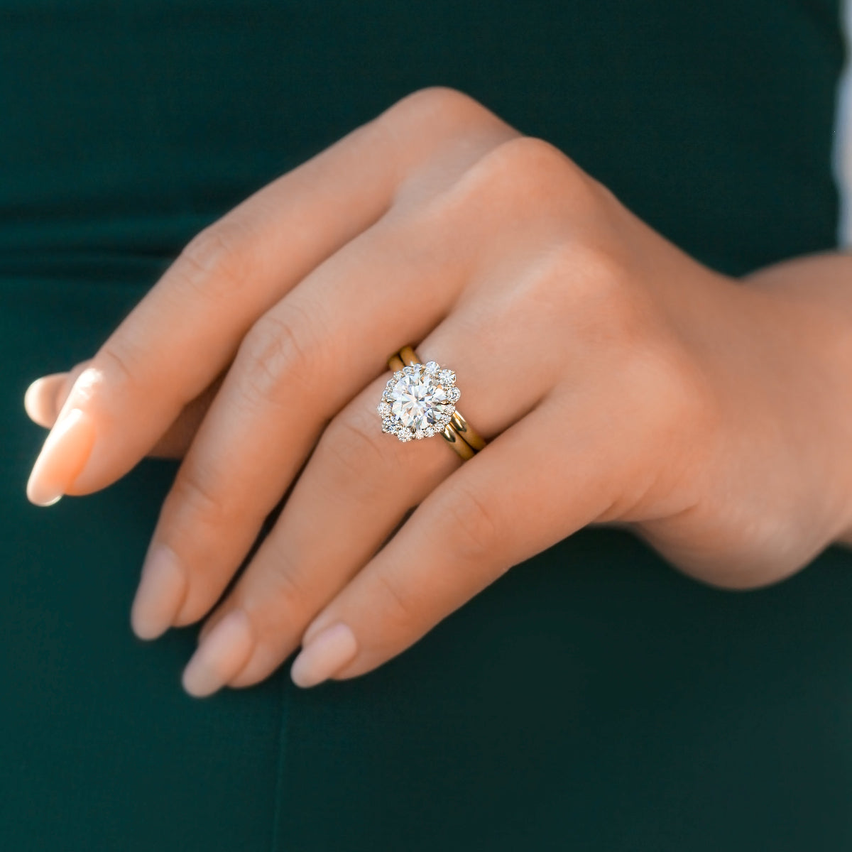 Raphaela Bridal Set - Round Moissanite with Lab-Grown Diamond Halo Two-Piece Bridal Set