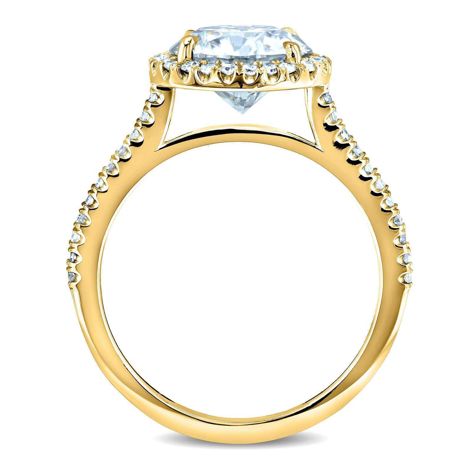 Round Brilliant Forever One Moissanite and Diamond Halo Engagement Ring 2 1/6 CTW 14k Yellow Gold (DEF/VS, GH/I)