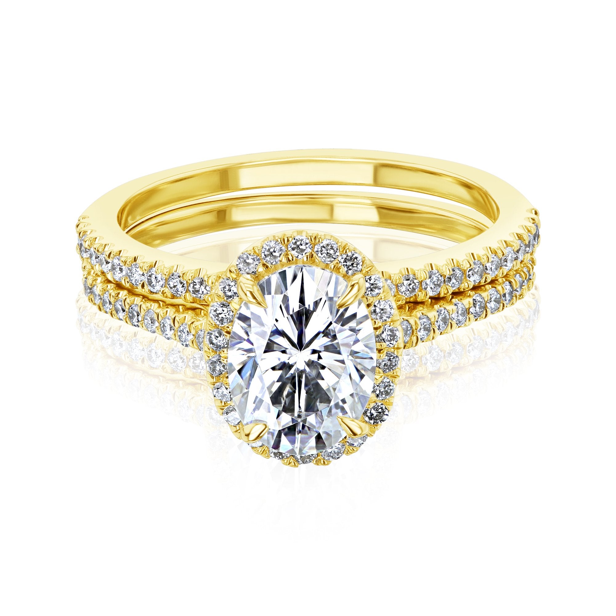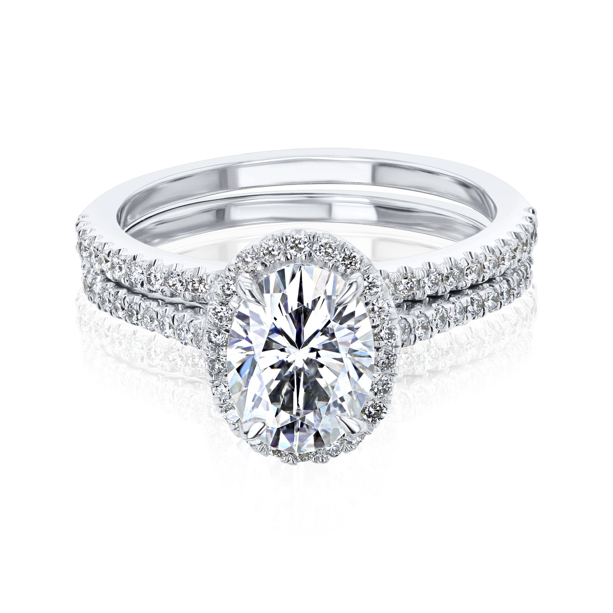 1.5ct Classic Oval Moissanite with Halo Diamonds Bridal Set