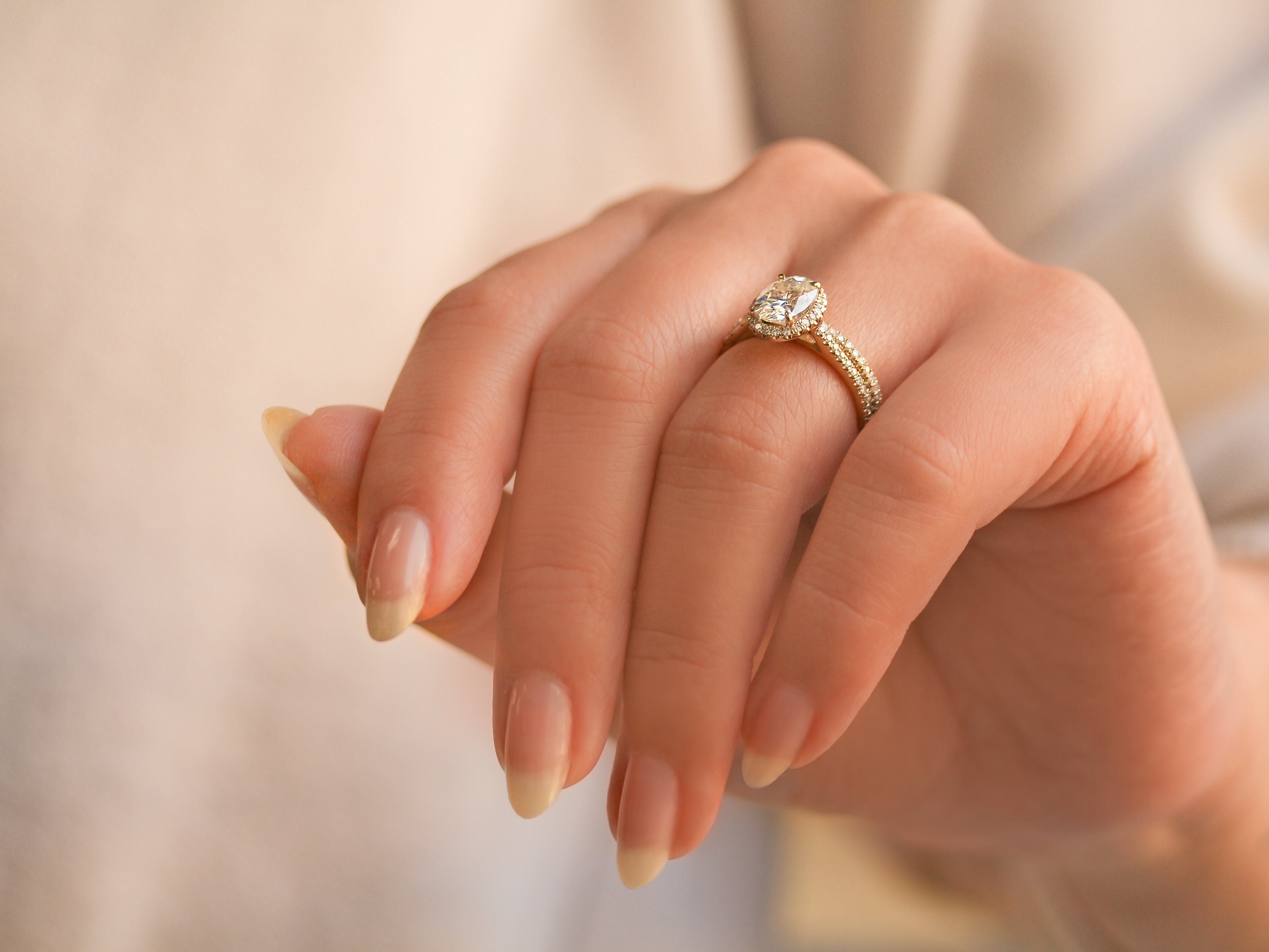All photos on this product are taken in-house with real stock set with the described carat weight. The ring in the photos, including the model image, is a size 5.5.